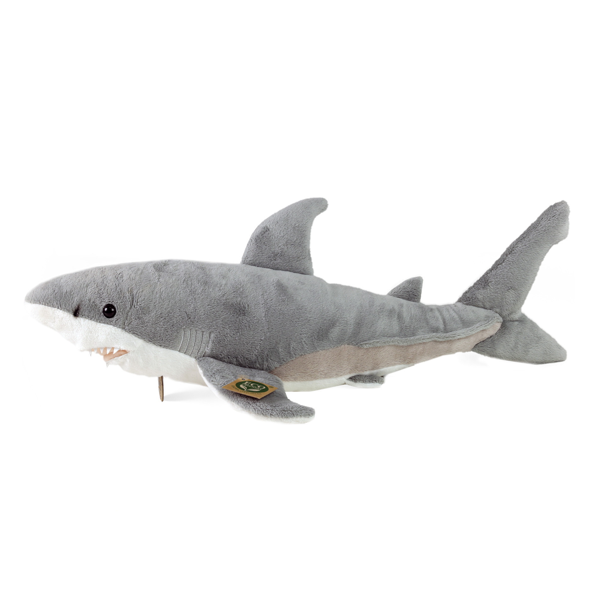 Der gefürchtete Weiße Hai, diesmal in Plüschform. Der wunderschöne 51 cm große Plüschhai ist aus hochwertigem Plüsch gefertigt und Teil der exklusiven RAPPA-Plüschtierkollektion. Ein ideales Geschenk für kleine und große Kuscheltierliebhaber! Was bedeutet UMWELTFREUNDLICH eigentlich? Die Füllung des Plüschtiers besteht aus recycelten PET-Flaschen. Dieses Material ist absolut sicher, fühlt sich von Standardfüllungen nicht zu unterscheiden und ist für die Sicherheit selbst der Kleinsten vollständig zertifiziert. Wir haben uns für den grünen Weg entschieden, der so umweltfreundlich wie möglich ist – den UMWELTFREUNDLICHEN Weg.