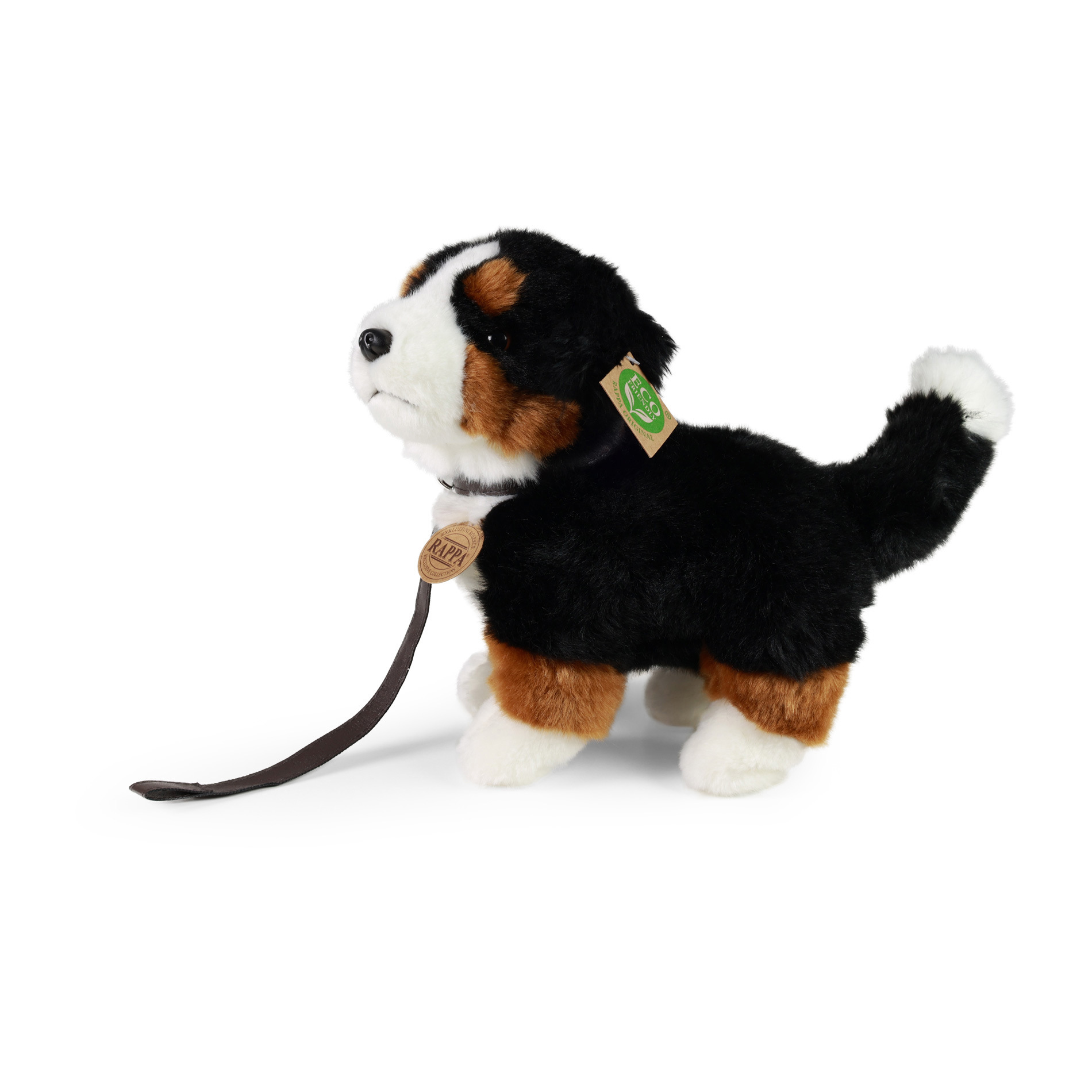 Der 22 cm große Plüsch-Sennenhund ist aus hochwertigem, weichem Plüsch handgenäht und wirkt dadurch lebensecht. Es ist Teil der exklusiven RAPPA-Plüschtierkollektion. Wir haben uns für den grünen Weg entschieden, der so umweltfreundlich wie möglich ist – den UMWELTFREUNDLICHEN Weg. Was bedeutet UMWELTFREUNDLICH eigentlich? Die Füllung des Plüschtiers besteht aus recycelten PET-Flaschen. Dieses Material ist absolut sicher, fühlt sich von Standardfüllungen nicht zu unterscheiden und ist für die Sicherheit selbst der Kleinsten vollständig zertifiziert.