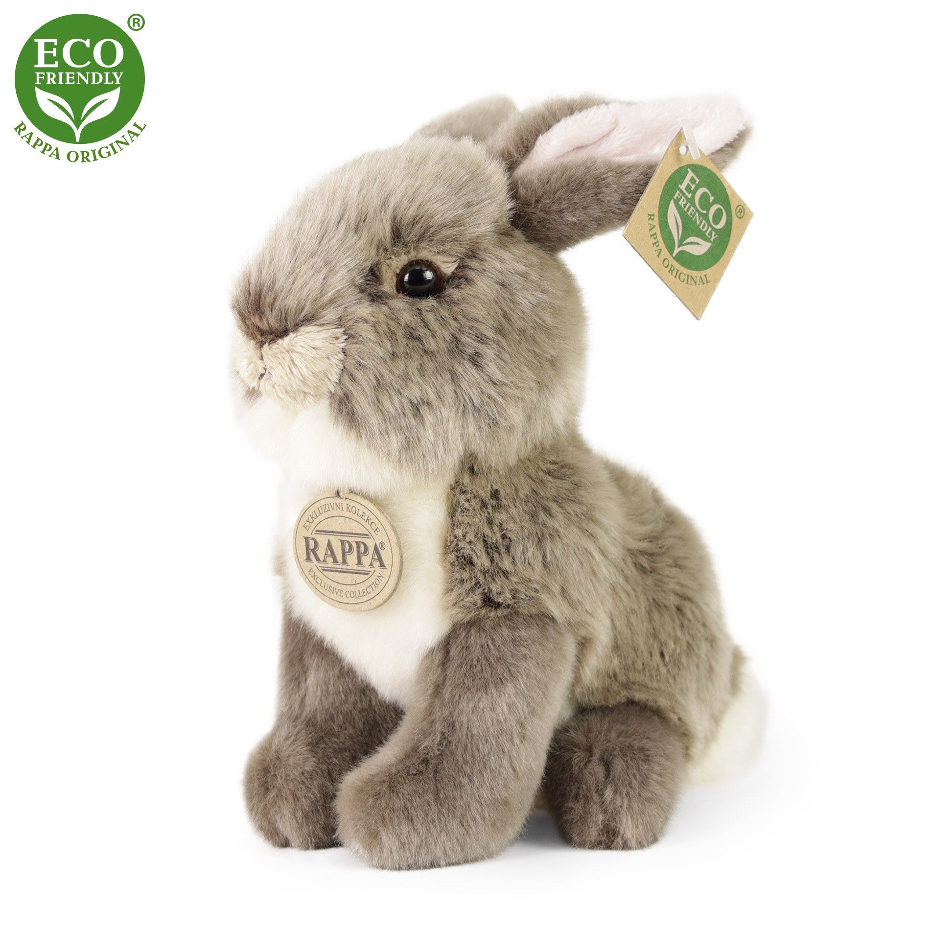Sedící plyšový zajíc o velikosti 20 cm. Zajíc je vyroben z vysoce kvalitní plyše a je tak součástí exkluzivní kolekce plyšových hraček RAPPA. Co to vlastně ECO-FRIENDLY znamená? Výplň plyšové hračky je vyrobena z recyklovaných PET lahví. Tento materiál je zcela bezpečný, na omak nerozeznatelný od standardní výplně a plně atestovaný pro bezpečnost i těch nejmenších. Rozhodli jsme se jít zelenou cestou co nejméně zatěžující životní prostředí- cestou ECO-FRIENDLY.