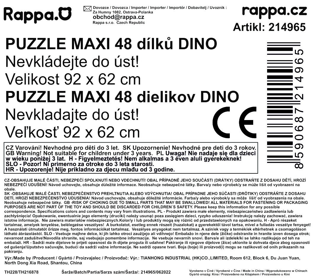 Beschreibung Rappa Puzzle Dinosaurier Maxi 48 Stk. 92 x 62 cm
