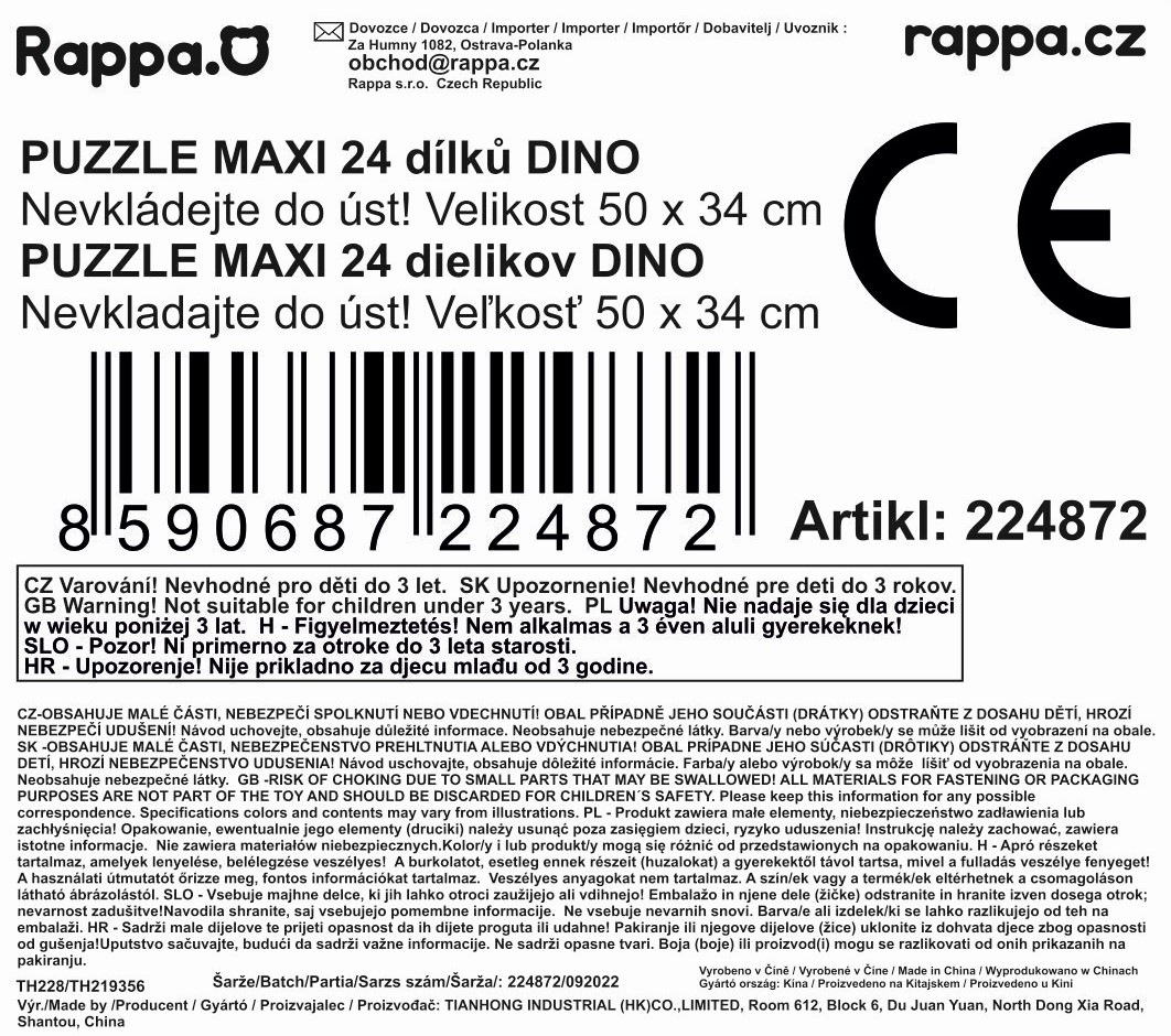 Beschreibung Rappa Puzzle mit Dinosauriern 24 Teile 50 x 34 cm