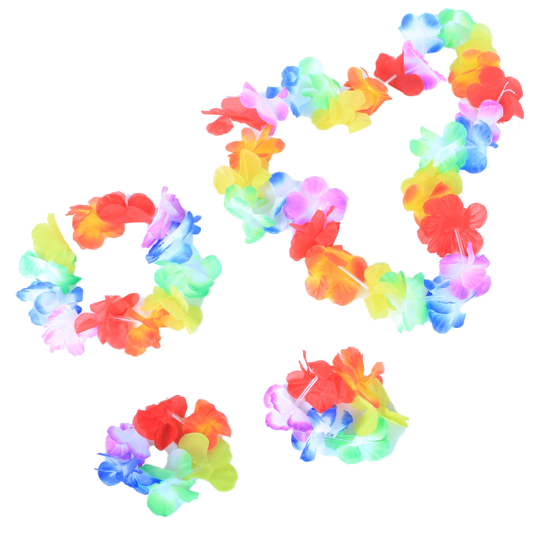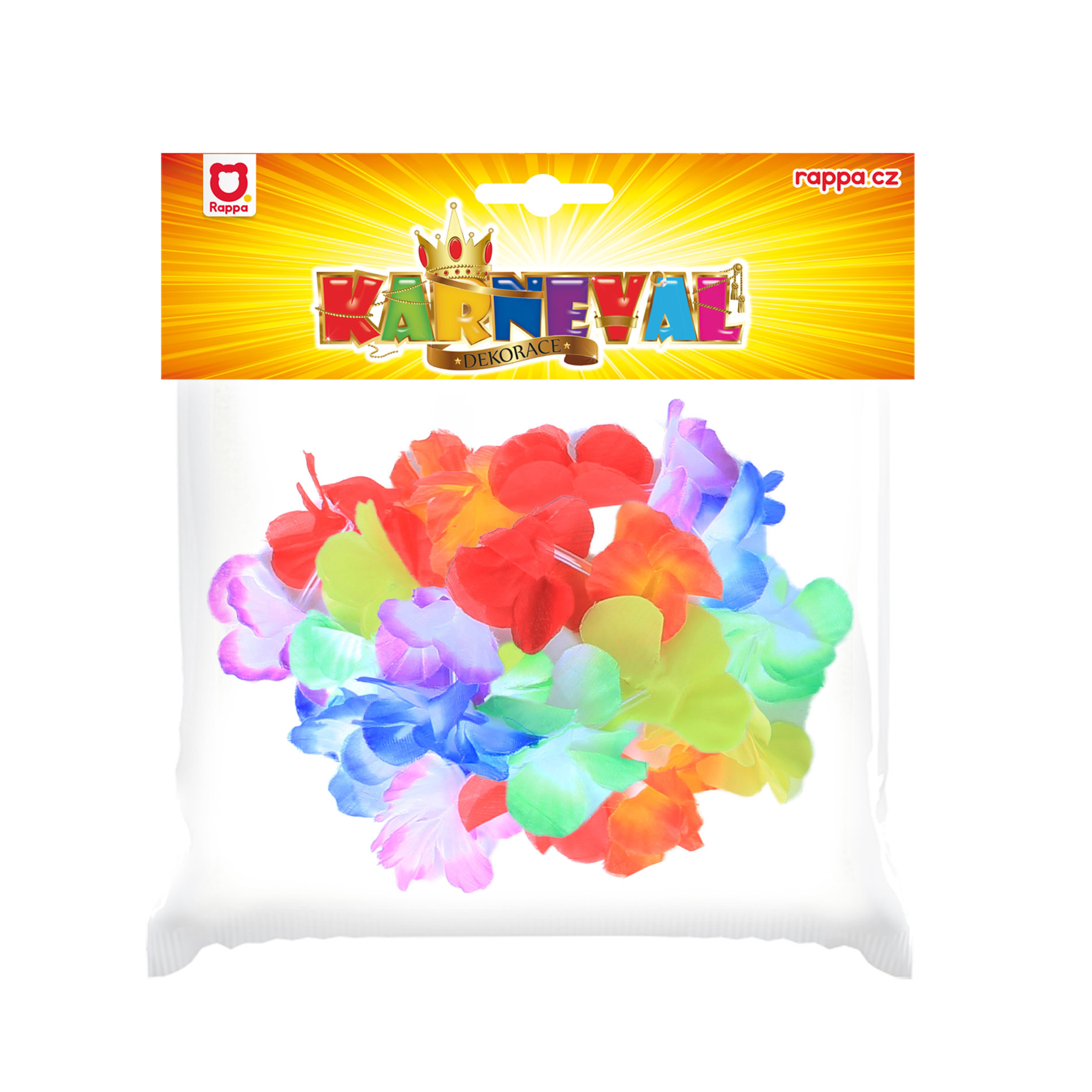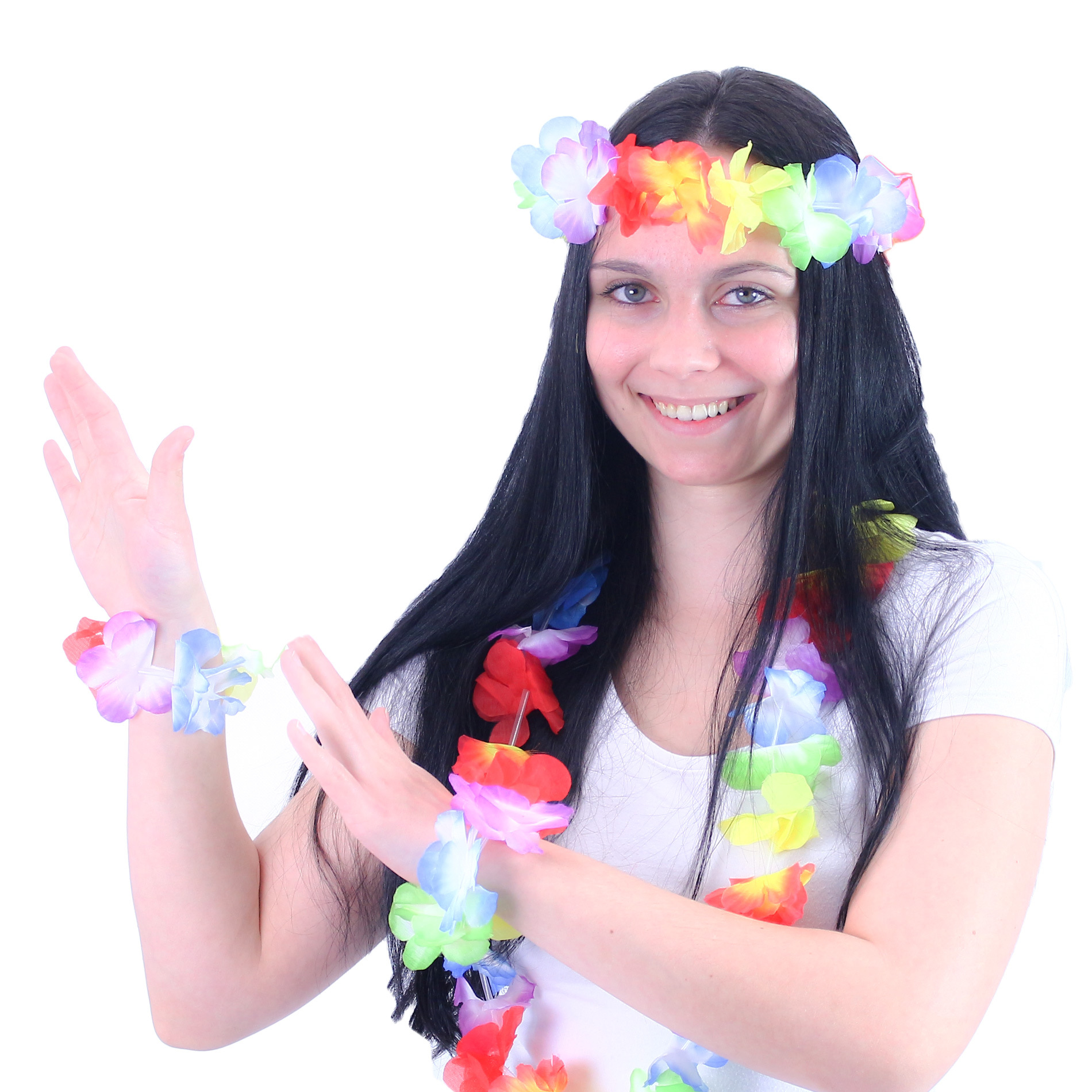 Nepřehlédnutelná sada na karneval ve stylu "Havaj" je parádním doplňkem ke kostýmu. Tento barevný set obsahuje 2 náramky, 1 náhrdelník a 1 čelenku. Vše je zdobeno okvětními lístky a nádhernou kyticí. Senzace!