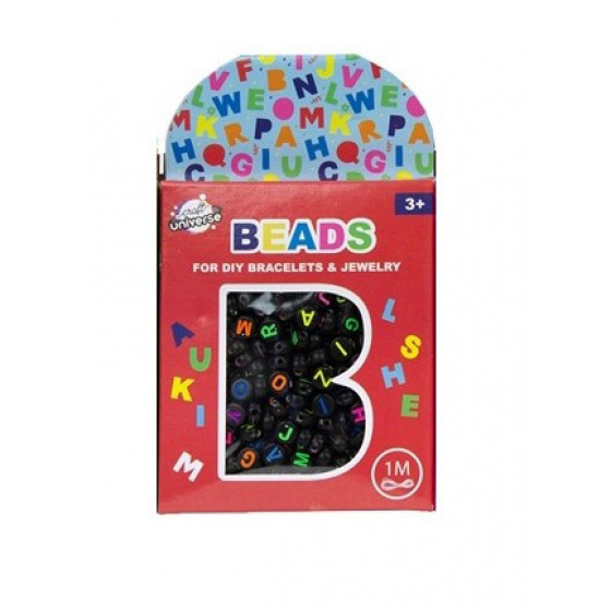 Beschreibung Rappa Sada korálků - písmenka černé + 1 metr provázek