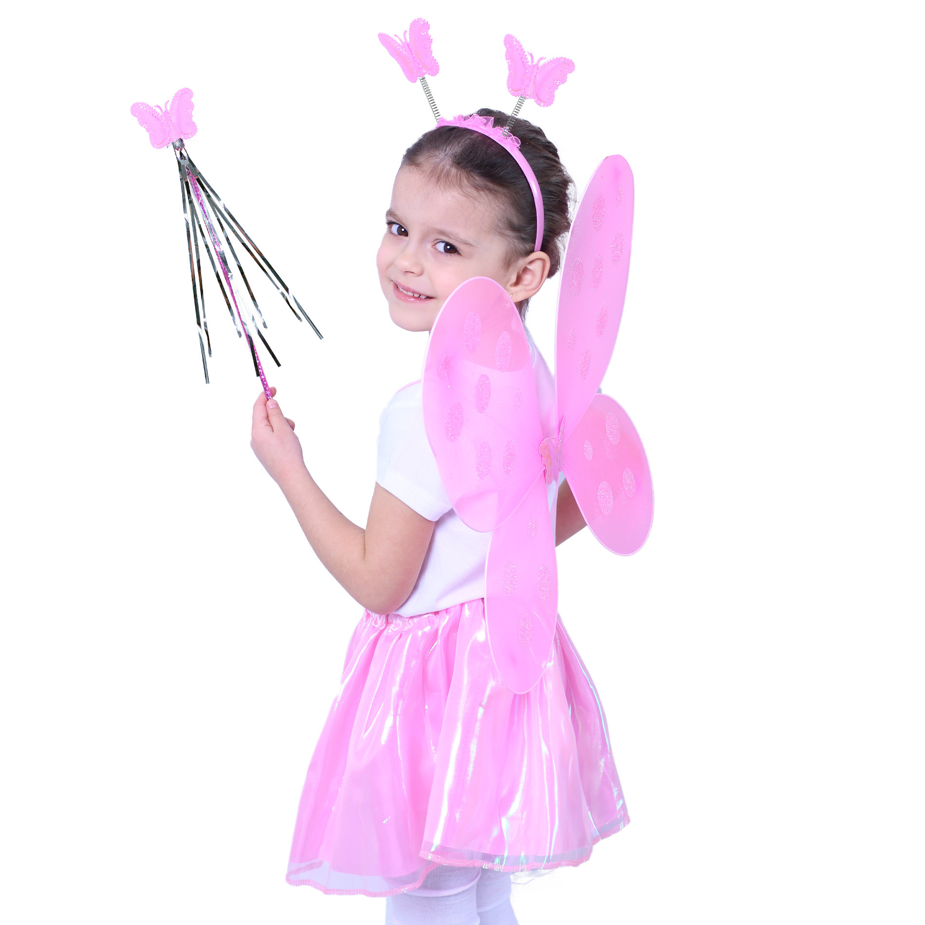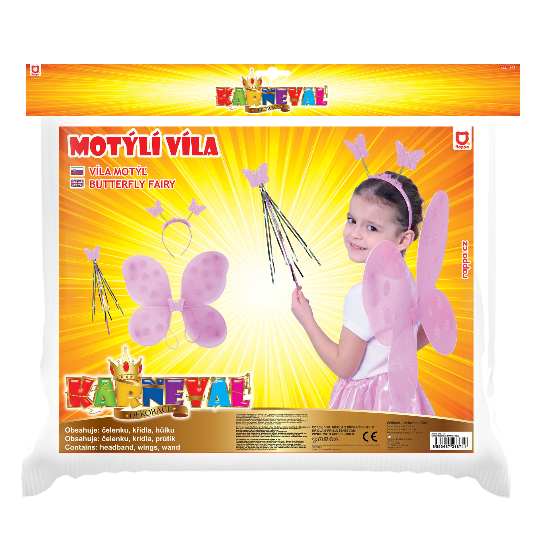 Beschreibung Rappa Schmetterlingsflügel rosa mit Stirnband und Zauberstab