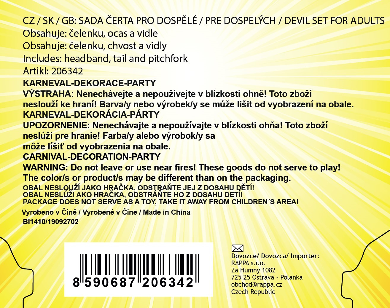 Rappa Teufelsset mit Haarreif, Zauberstab und Schwanz