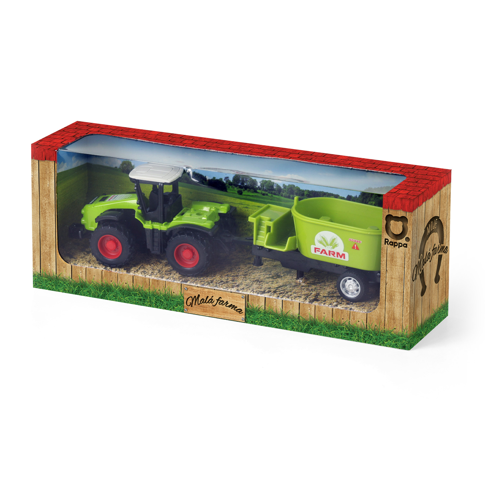 Moderner Traktor mit Anhänger, ein Spielzeug aus der My Little Farm-Kollektion. Ein unverzichtbarer Helfer für jeden Kleinbauern! Sie können den Anhänger einfach abkoppeln und den Traktor für andere Arbeiten verwenden. Der Traktor läuft auf einem Rücklaufschwungrad und seine Länge einschließlich Anhänger beträgt 18 cm. 4 Typen zur Auswahl.