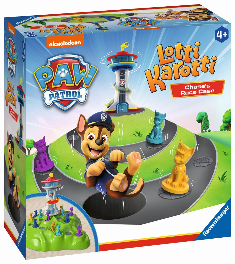 Eine weitere Mission für die Paw Patrol! Helfen Sie Chase, seinen Weg durch Adventure Bay zu finden und als Erster die Spitze des Wachturms zu erreichen. Aber Vorsicht! Die Reise steckt voller Überraschungen. Eine falsche Bewegung und Chase könnte in eines der Löcher fallen, die erscheinen, wenn sich der Wachturm dreht! Können Sie auf Kurs bleiben und einen Ihrer Welpen als Erster auf die Spitze des Turms bringen? Das Spiel enthält: 1 Adventure Bay (Hügel mit Löchern), 1 rotierender Wachturm, 16 Chase-Spielfiguren in 4 Farben, 48 Aktionskarten, 1 Stickerbogen