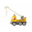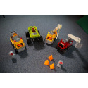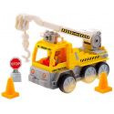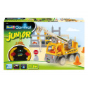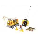 Modellinformationen: Faltbares ferngesteuertes RC-Automodell. Der einfache Aufbau und eine an kleine Kinderhände angepasste 2-Kanal-Steuerung, die sich leicht vorwärts, rückwärts und seitwärts steuern lässt, garantieren grenzenlosen Spielspaß. Ein funktionierender Kran und blinkende LED-Lichter sorgen für echte Baustellenatmosphäre.