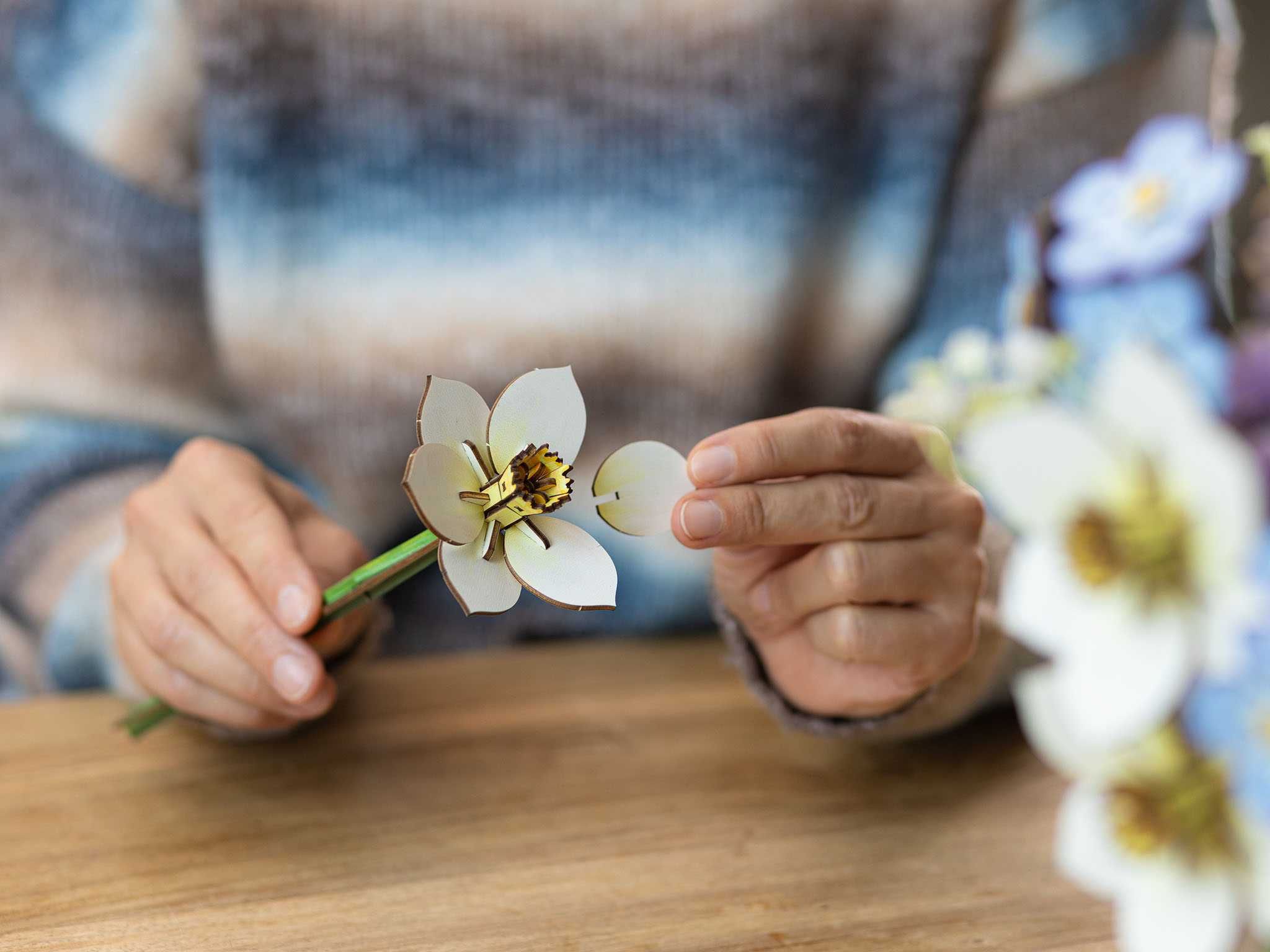 Čerstvé květiny vám okamžitě vykouzlí úsměv na tváři – jejich krása ale bohužel často mizí až příliš rychle. Se sadou „Blossom Festival“ to můžete změnit. Vytvoříte květinové umělecké dílo, které nikdy nevadne a přináší trvalou radost. Tato vysoce kvalitní dřevěná stavebnice kombinuje meditativní klid tvoření se stylovou bytovou dekorací. Výsledkem je svěží kytice, která je tak jemně zpracovaná, že se musíte podívat dvakrát, abyste si uvědomili: je to dřevo, ne svěží zelená. Perfektní pro každého, kdo chce rozzářit svůj domov nebo hledá dárek s trvalou hodnotou.