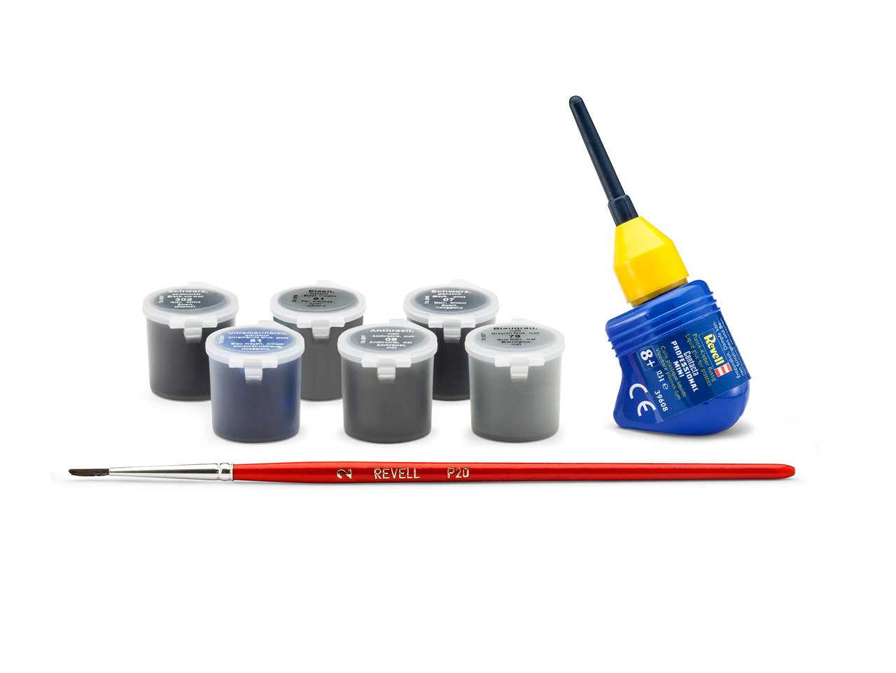 Gebrauchsanweisung: Acrylfarbe auf Wasserbasis. Mischen Sie die Farbe vor Gebrauch gut durch. Mit einem Pinsel oder Spray auf eine trockene, saubere Oberfläche auftragen. Nicht brennbarer Untergrund, trocknet schnell – nach 1 Stunde nicht überstreichbar, vollständig trocken in 2-3 Stunden, je nach Schichtdicke. Bei Bedarf mit Wasser verdünnen. Die Verwendung eines ungeeigneten Verdünners kann den Lack ruinieren! Reinigt mit Verdünner Revell Aqua Color Clean. Zum Sprühen wird eine Verdünnung von maximal 20 – 25 % empfohlen. Spülen Sie Pinsel und Werkzeuge sofort nach Gebrauch mit Wasser ab. Den Behälter nach Gebrauch wieder fest verschließen. Nach dem Öffnen möglichst schnell verbrauchen, die Farbe trocknet an der Luft. Vor Frost schützen. Enthält eine Mischung aus 5-Chlor-2methylisothiazol-3(2H)-on und 2-Methylisothiazol-3(2H)-on mit Magnesiumchlorid und Magnesiumnitrat. Kann eine allergische Reaktion hervorrufen.