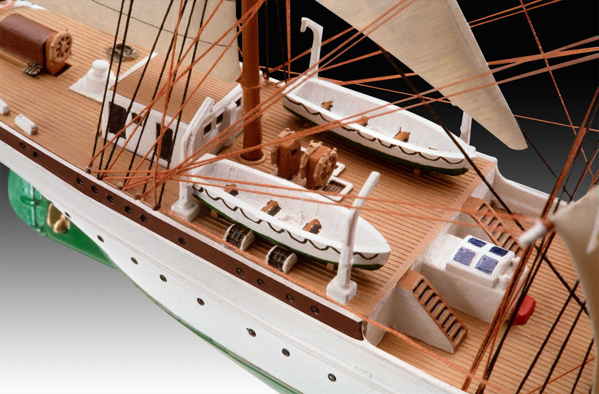 Modell- und Originalinformationen: Das Segelschulboot Gorch Fock ist nicht nur ein Ausbildungsschiff der Deutschen Marine, sondern auch ein Botschafter der Bundesrepublik Deutschland in Häfen dieser Welt. Die Dreimastbark lief 1958 vom Stapel und seither haben Generationen von Marineoffizieren auf ihr die Kunst der Seemannschaft erlernt.
