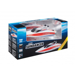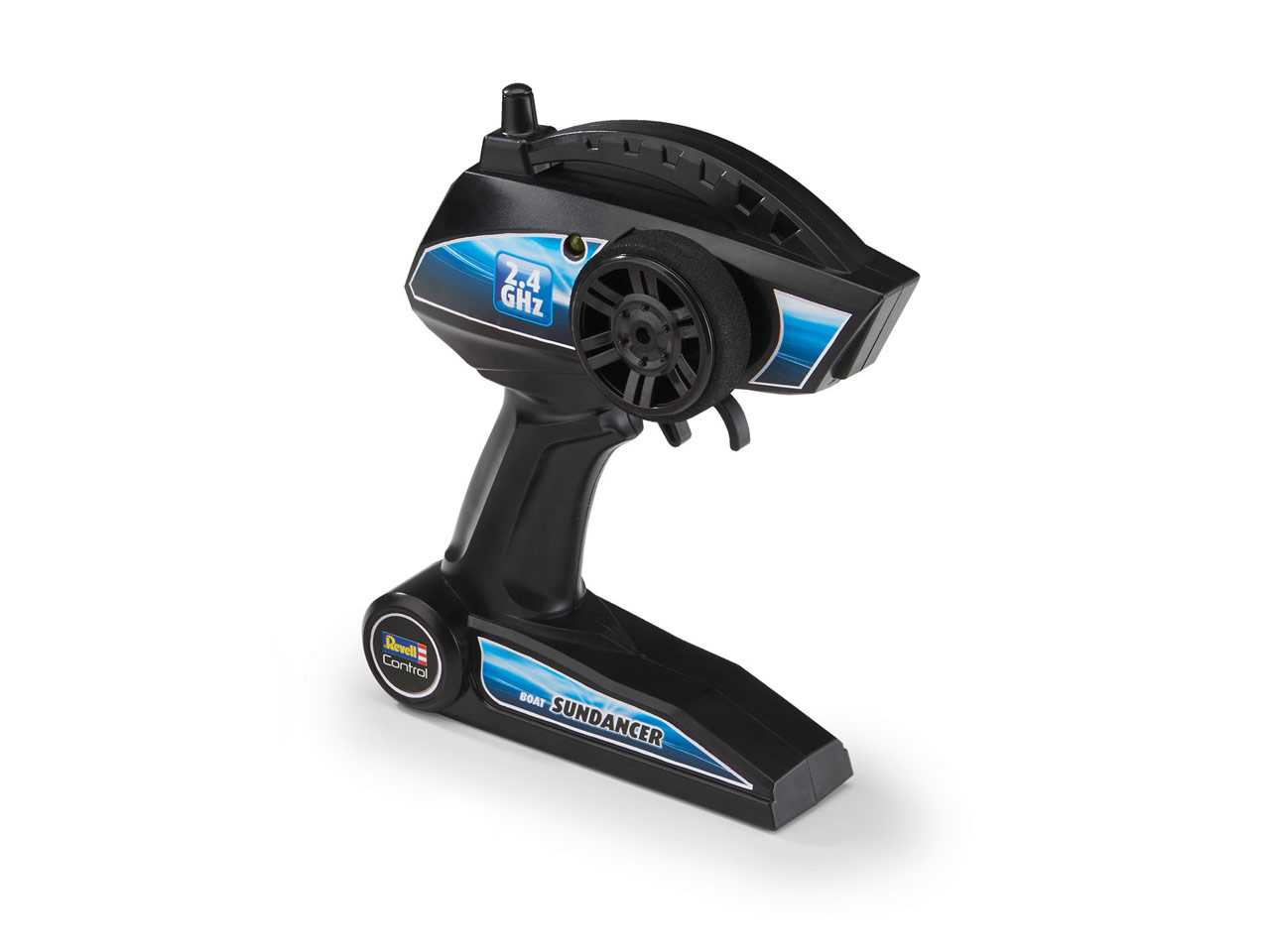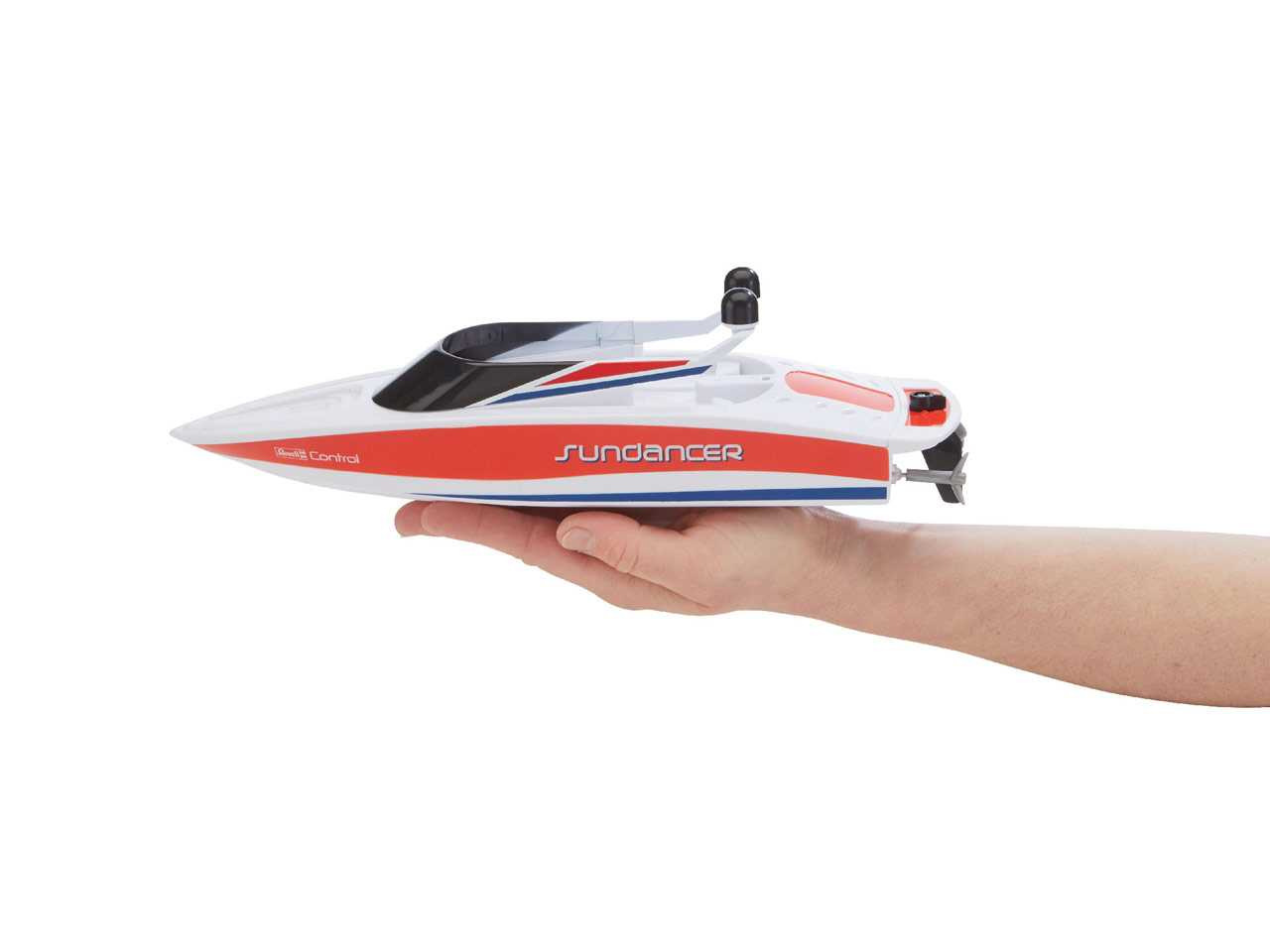 Informace o modelu: Nastupte na palubu a opřete se do vln se svou vlastní jachtou. Revell Control Sundancer je dokonalý člun vybavený nejmodernější technologií. Dva elektromotorky a zabudovaná Li-Ion baterie mu dávají dostatečný výkon i čas na plavbu. S přibalenou USB nabíječkou můžete svou jachtu dobýt prostřednictvím kteréhokoliv USB portu. Zcela zapouzdřená elektronika je dobře chráněná před vodou dokonce i při nejdivočejších manévrech. 2.4Ghz technologie vám umožní ovládat své čluny i s více přáteli najednou, aniž by se vaše signály navzájem rušily. Ochranný okruh zamezuje spouštění lodních šroubů, pokud je člun na souši. Nehrozí tak žádné zranění.