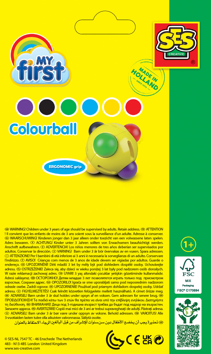 Eine Zeichenwachskugel in verschiedenen Farben für Kinder, die keinen Stift in der Hand halten können. Es färbt nicht auf die Hände und lässt sich leicht aus der Kleidung auswaschen. Es formt die Handfläche und lehrt, wie man einen Stift richtig hält. Fördert die motorischen Fähigkeiten. Erhältlich in 6 Grundfarben. Geeignet für Kinder: 1–4. Alle Produkte der Linie „My First“ sind speziell für die Kleinsten entwickelt. Die Produkte dieser Linie sind ergonomisch, äußerst sicher, hypoallergen und glutenfrei.