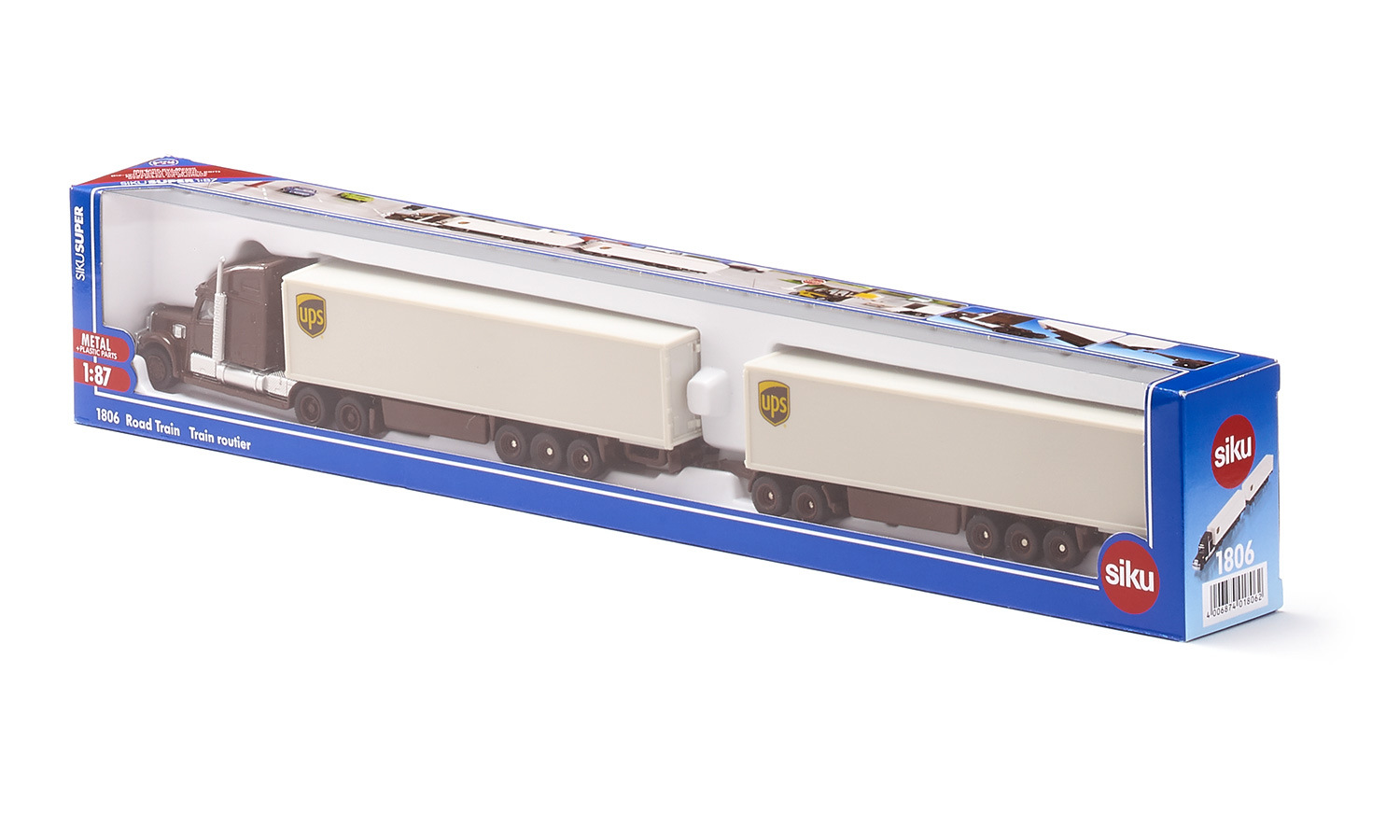 Masivní tahač o délce 30 metrů a kamion nyní v řadě SIKU s miniaturním modelem v měřítku 1:87! Působivý vůz v americkém stylu zdobený úžasnými chromovými částmi, táhne dvounápravové přívěsy se třemi nápravami. 22 kol s pogumovanými pneumatikami zajišťuje hladkou jízdu na jakémkoli povrchu. Měřítko: 1:87. Rozměr: 400 x 33 x 48 mm. Rozměr balení: 44 x 4,8 x 7,5 cm. Věk: 3+