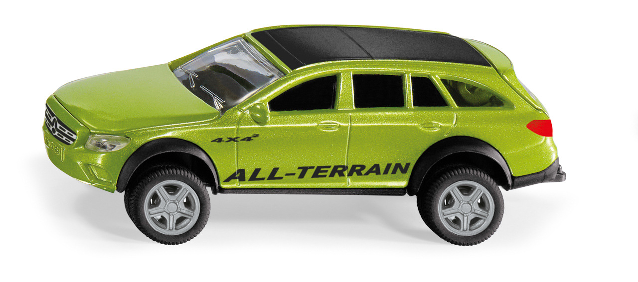 SIKU Super – Mercedes-Benz E-Class. Stejně jako v originále má SIKU T-model třídy E opravdu vysoký standard. Specialisté ze SIKU postavili pružiny v podvozku tak, že je vůz schopný překonat extrémní terén. Díky otevírací kapotě, výklopným dveřím, odnímatelným kolům a spojovacímu zařízení pro přívěs nabízí terénní kombi spoustu zábavy při hraní. Měřítko: 1:50. Rozměr: 104 x 44 x 35 mm. Rozměr balení: 15,5 x 7,5 x 6,5 cm. Věk: 3+