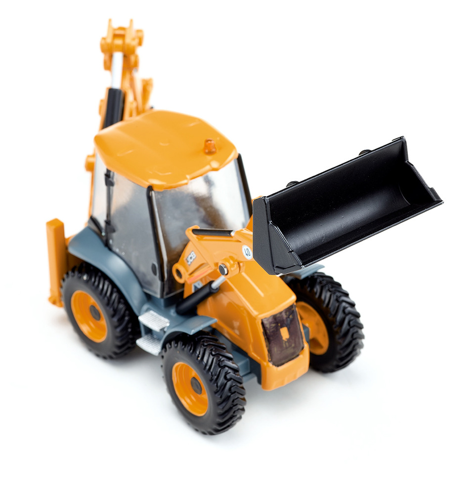 SIKU Super – Nakladač s rypadlem JCB 4CX je současně kolový nakladač a rypadlo. Na stavbě může vykopat výkopy, stejně jako nakládat hlínu, štěrk, písek a sutiny. Nakladač má pohyblivý čelní nakladač a zadní rameno. Rameno zadního rypadla lze otočit doprava a doleva. Měřítko: 1:50. Rozměr: 180 x 51 x 84 mm. Rozměr balení: 19,5 x 9,7 x 5,9 cm. Věk: 3+