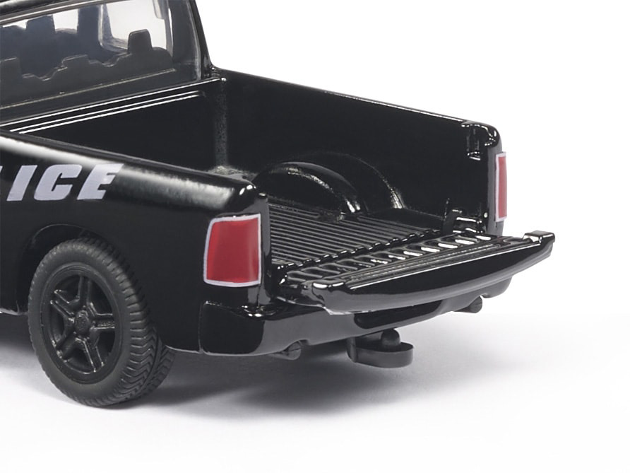 RAM 1500 US police – světoznámá značka pro masivní a energický pick-up s 8-válcovým jádrem. V měřítku 1:50 demonstruje tento pick-up svou skutečnou nádheru a funkčnost. Kapotu, dveře a víko zavazadlového prostoru lze otevřít. Nejnovější inovace od firmy SIKU, jsou v kolech. Poprvé jsou odnímatelné a umožňují opětovné uvedení do provozu. Policejní verze je vyzdobena typickým kulatým světlem a nápadným potiskem. Rozměr: 121 x 43 x 42 mm. Rozměr balení: 15,5 x 6,5 x 7,5 cm. Věk: 3+