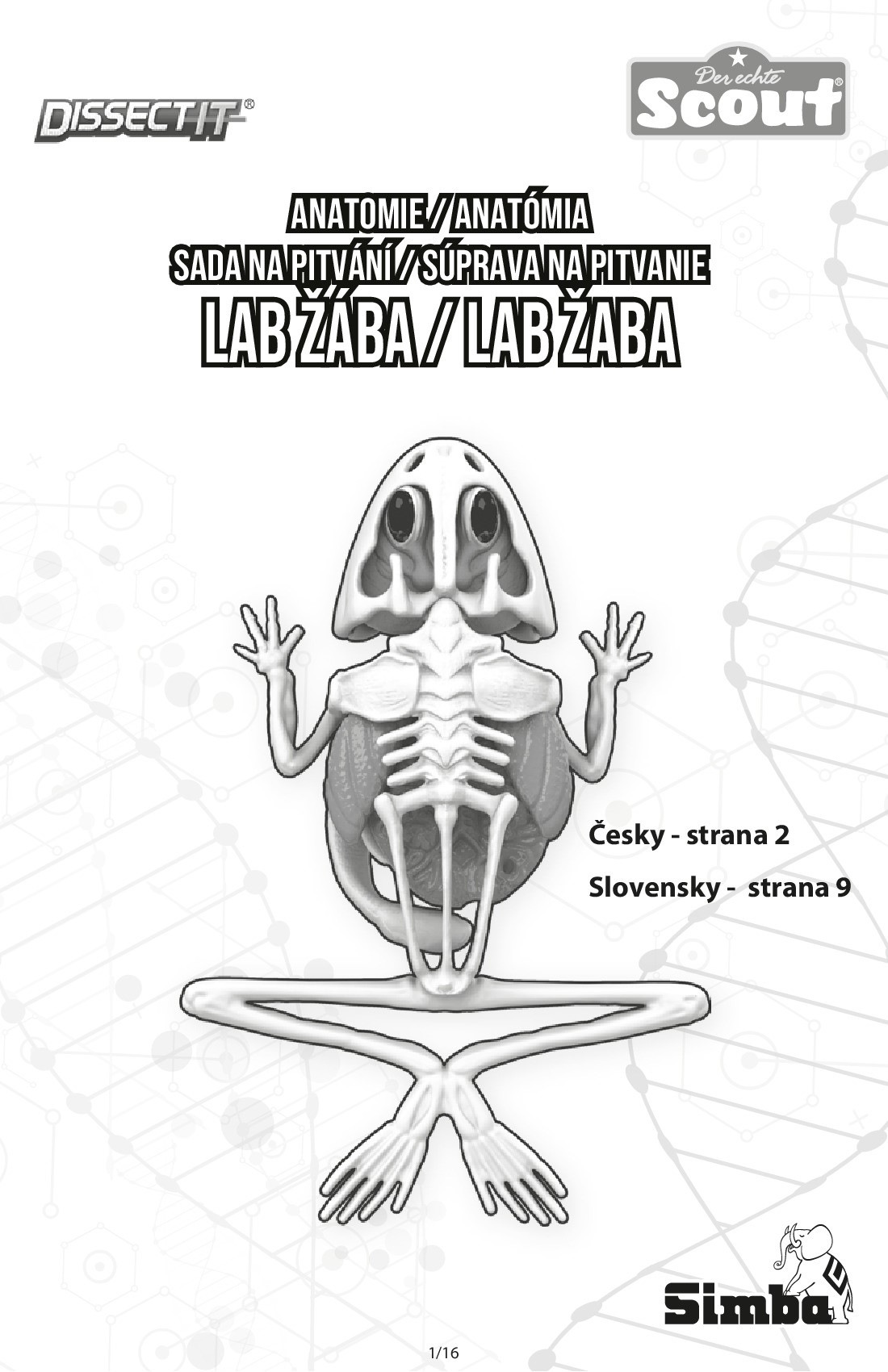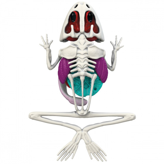 Sada s nástroji k pitvě žáby, jejiž kosti a orgány jsou pokryty zeleným slizem. Prvky lze vyjmout a prozkoumat jednotlivě. Součástí je sáček s práškem pro vytvoření opětovného slizu. Po dokončení první pitvy vložte orgány a kostru zpět do blistru, promíchejte prášek s vodou, zalijte vzniklým slizem a nechte ztuhnout v chladu. Žábu pak lze pitvat podruhé. Velikost 16 cm.