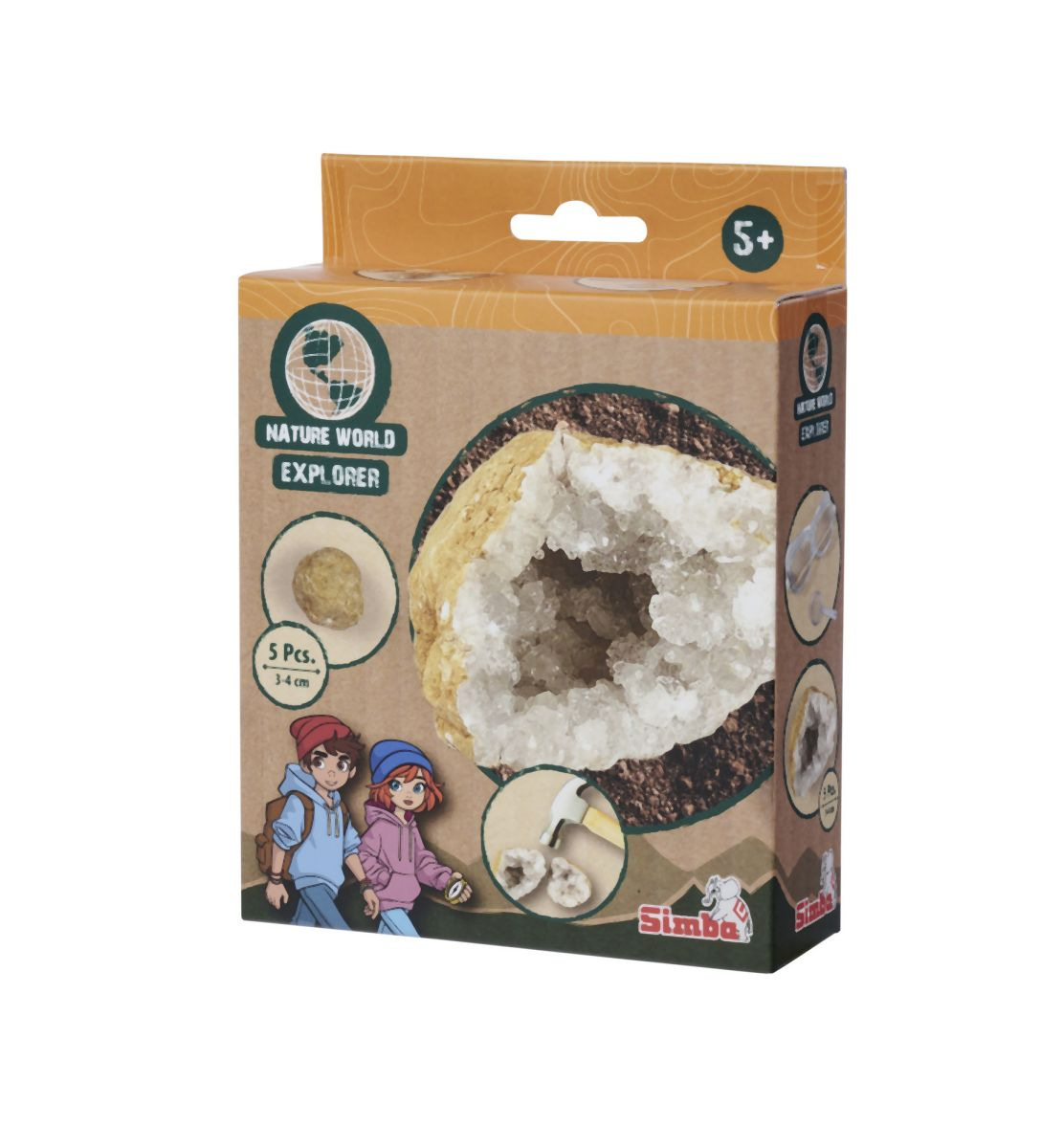 Sada na objevování geod, 5 ks opravdových geod o velikosti 3-4 cm. Součástí jsou ochranné brýle a lu