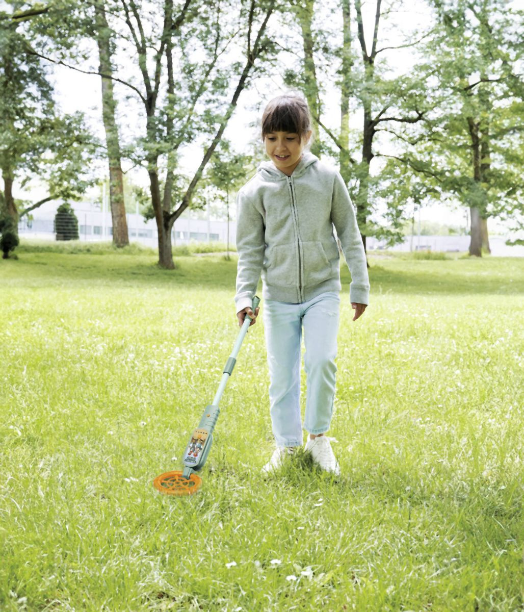 Detektor kovu se světelnou i zvukovou signalizací. Délka je nastavitelná od 61 do 81 cm.