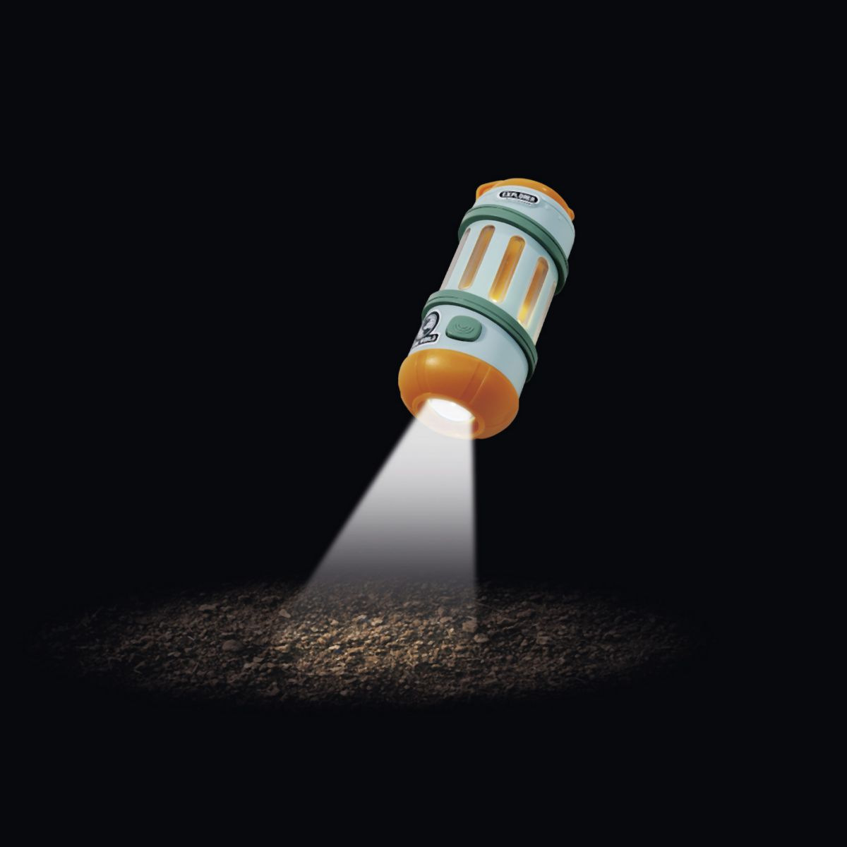 Baterka 2v1 která slouží jako klasická baterka anebo jako stojící svítilna s 360° svícením. S popruhem na zápěstí. Velikost baterky je 13 cm.