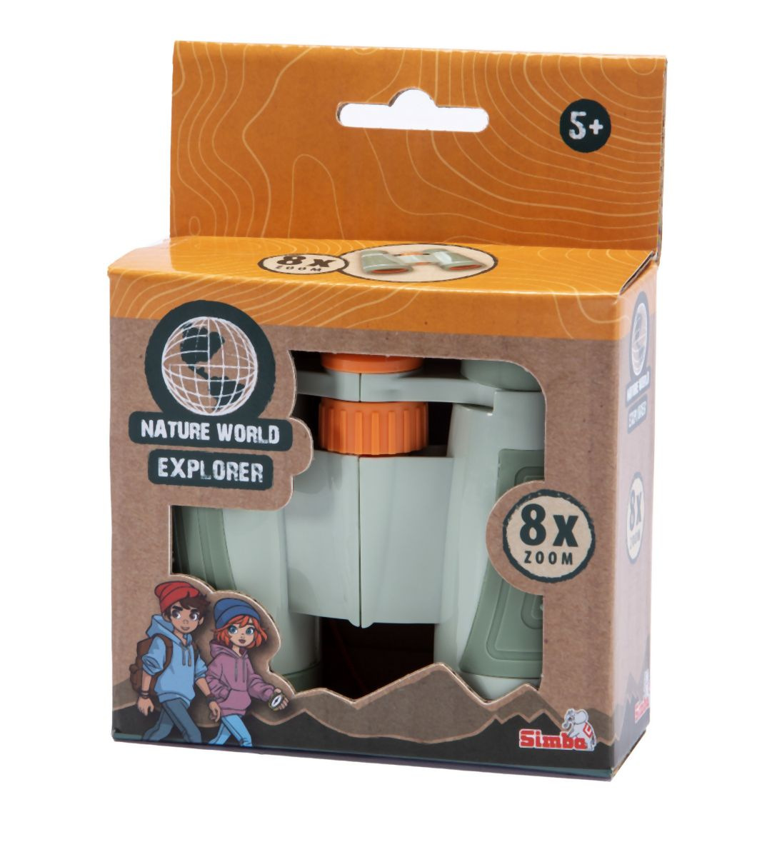 Dalekohled se zvětšením až 8x, se šňůrkou na krk. Velikost dalekohledu 11 cm.