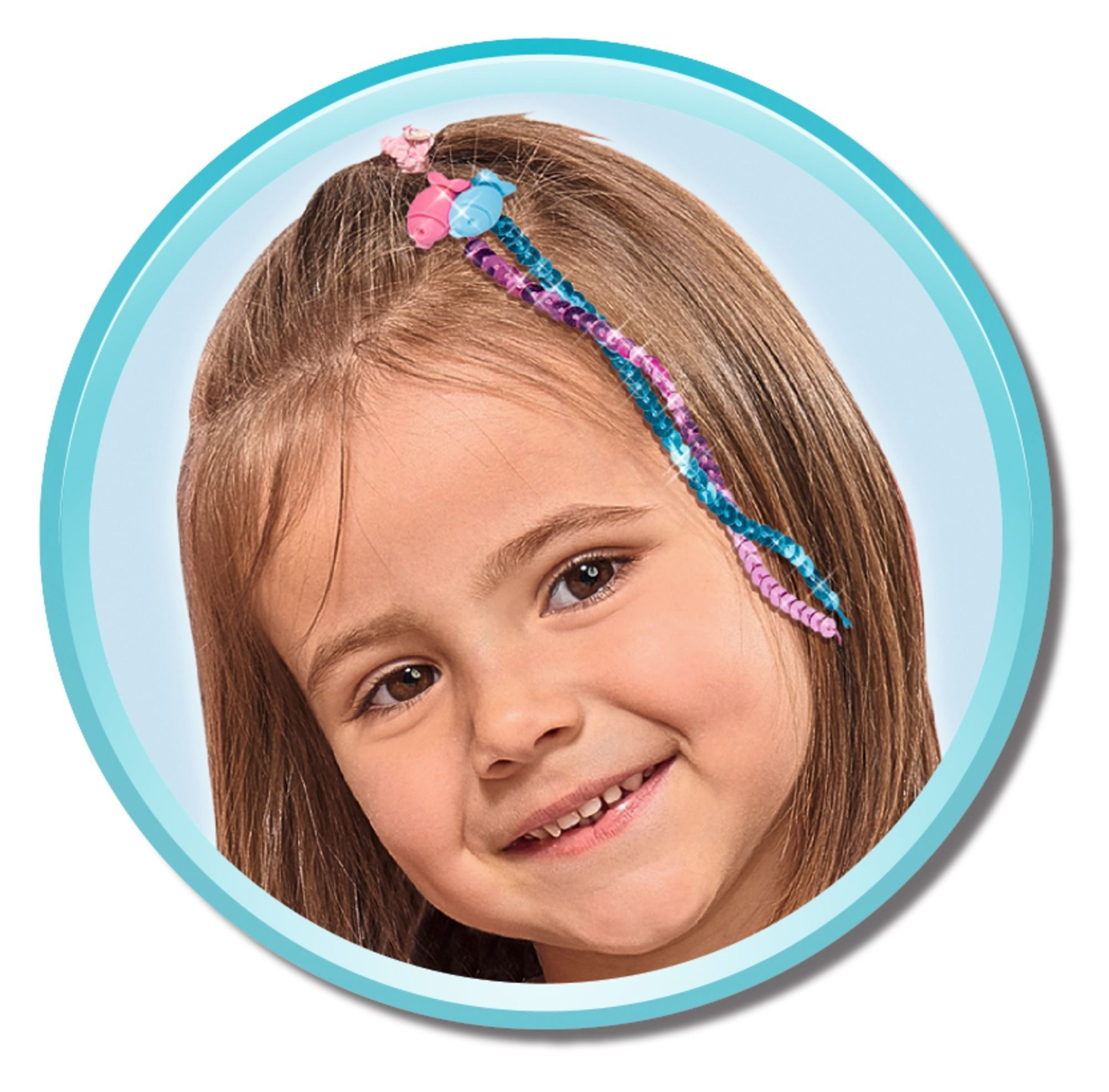 Panenka Steffi jako mořská panna se dvěma připínacími vlasovými prameny a ploutví z barevných flitrů se swap efektem. Velikost 29 cm.