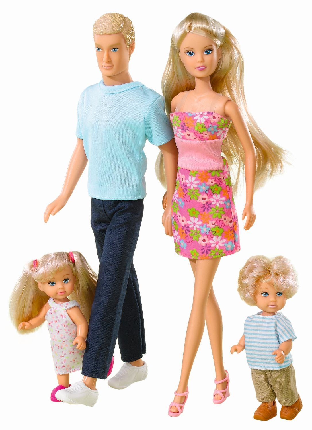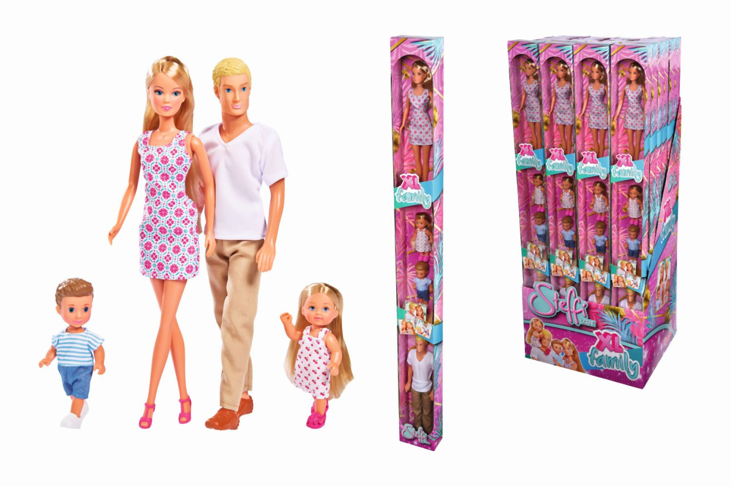 Panenka Steffi, Kevin, Evička a Timmy jako velká rodina. Výška Kevina 30 cm, Steffi 29 cm, Evička a Timmy 12 cm.