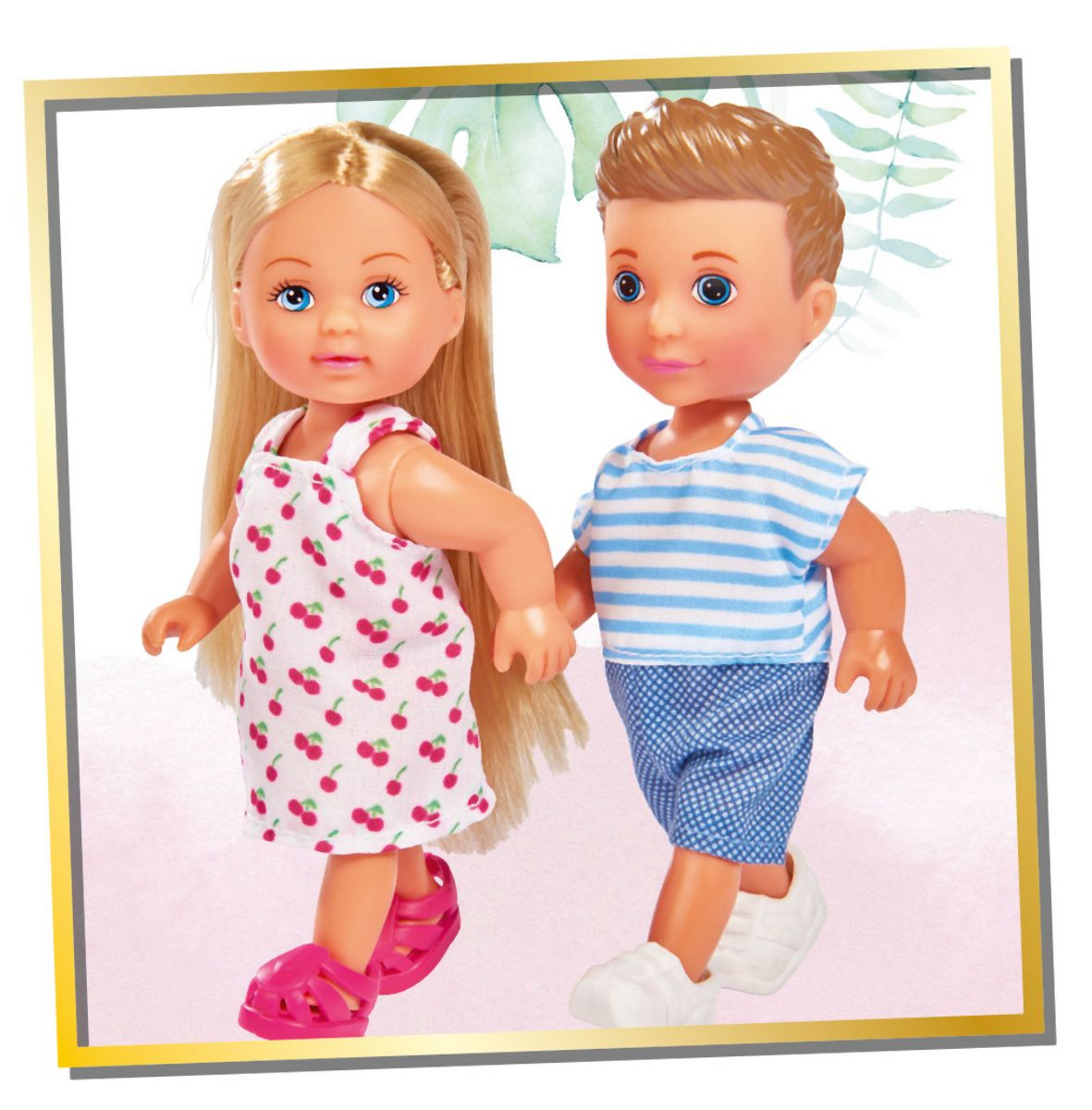 Evička-Puppe in Safarikleidung und mit einem Geländewagen. Außerdem gibt es einen Rucksack, ein klei
