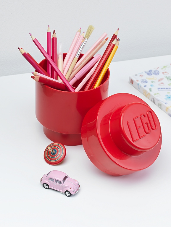 Plastový box ve tvaru LEGO kostky je vhodný nejen pro praktické ukládání např. tužek, pravítek, kostiček ze stavebnic a jiných hraček, ale též jako skvělá dekorace. Výběr z několika barev. Rozměry: průměr 123 mm, výška 183 mm. Materiál: polypropylen (PP). Vyrobeno bez použití BPA, ftalátů a PVC.
