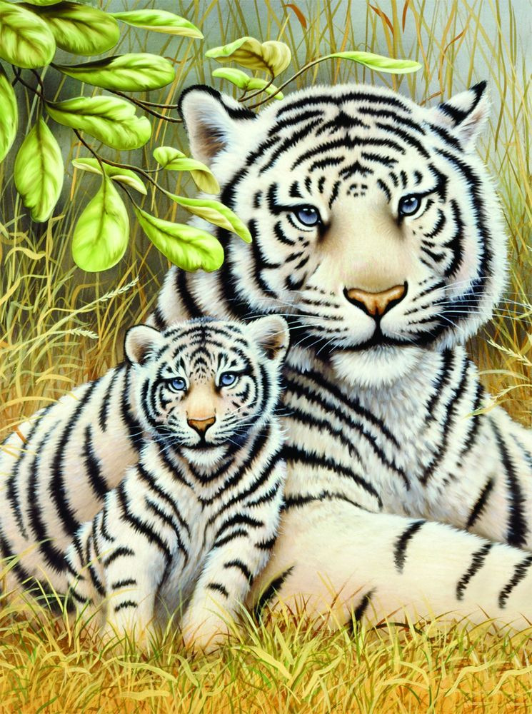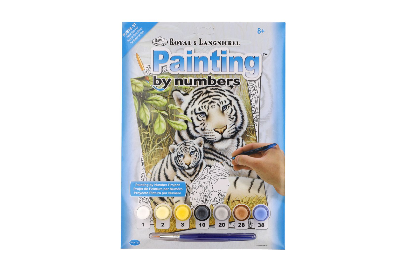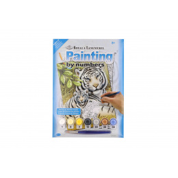 SMT Creatoys Malen nach Zahlen Weiße Tiger 22x30cm mit Acrylfarben und Pinsel auf Karte