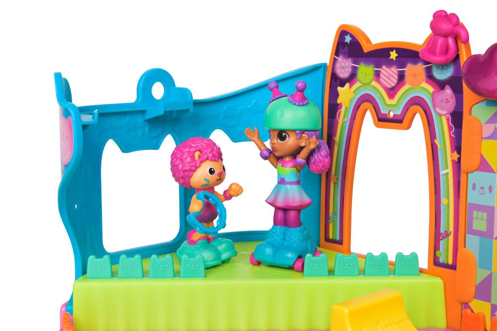 Vstupte do kouzelného světa Gábinina kouzelného domku s hrací soupravou Párty pokoj! Tato souprava obsahuje exkluzivní 10cm figurky bruslařky Gábi a bruslícího párty kocoura Martyho s funkčními bruslemi! Ozdobte Párty pokoj doplňky a nábytkem do kouzelného domku a pak si užijte senzorickou hru s hračkami, které se nachází na zdi Párty pokoje! Pro ještě větší zábavu připojte Párty pokoj ke Gábinině kouzelnému domku, postavte domek až se 4 patry a vyjeďte do párty pokoje kočičím výtahem! Hračky Gábinin kouzelný domek pro dívky a chlapce jsou skvělými dárky pro všechny děti, které jsou fanoušky tohoto seriálového hitu od Netflixu a rádi si hrají s domečky pro panenky. Zajistěte jim nezapomenutelný zážitek se světem roztomilých figurek, doplňků a nábytku do kouzelného domku, které mohou sbírat a libovolně skládat! Postavte si vlastní svět se základními stavebnicemi, jako je kuchyňka na hraní nebo hudební místnost, a spoustou sběratelských předmětů, jako je úžasná výletní loď, mořskovílí bazén a zbrusu nová souprava Párty pokoj – podkroví kouzelného domku s krytým skateparkem a roztomiloučkými balkónky s mini hračkami. Poskytují uspokojivou senzorickou hru a lze je bezproblémově zkombinovat s oběma verzemi kouzelného domku!