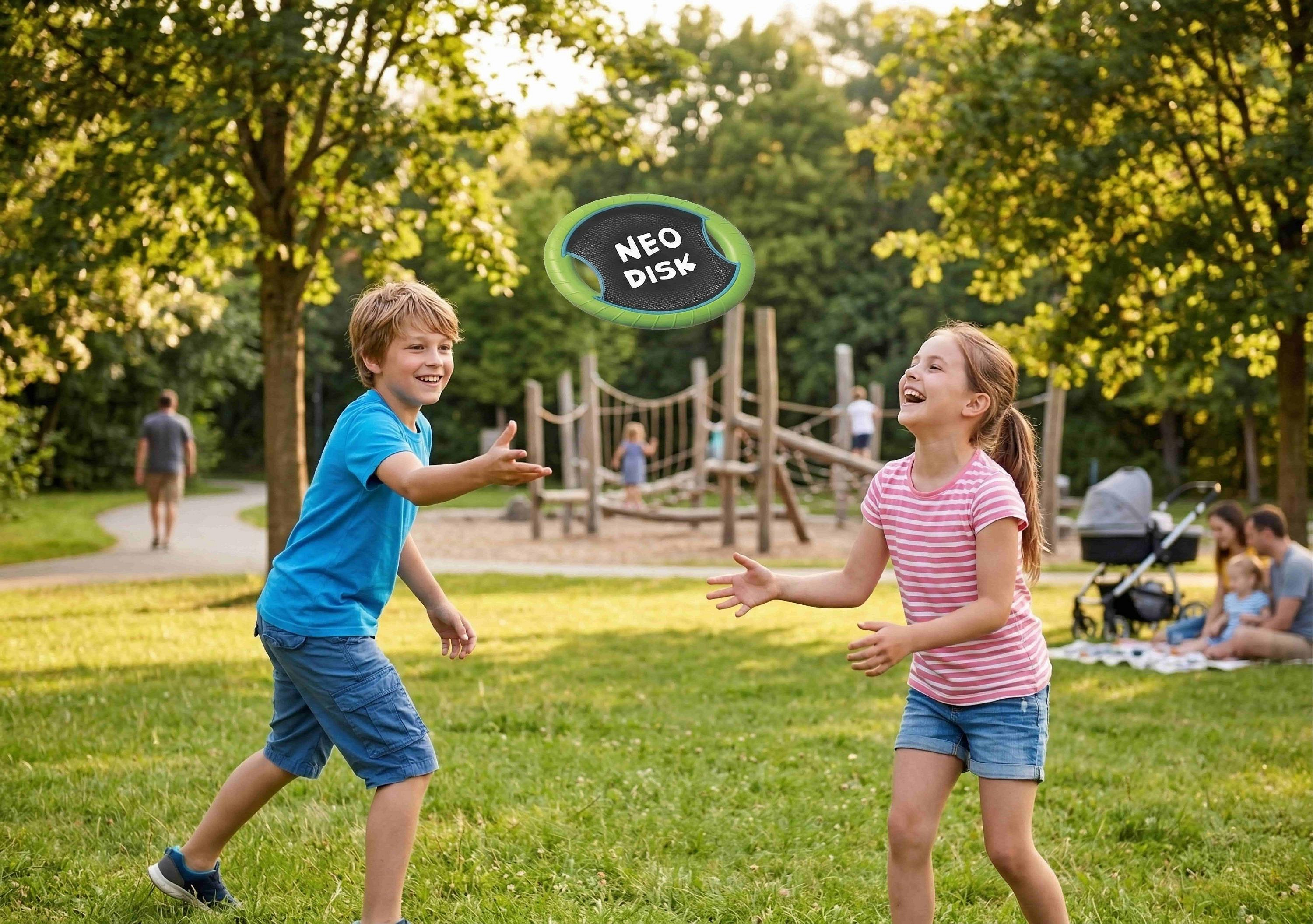 Neodisk ist ein Actionspiel für den Sommer. 2 Spielmöglichkeiten - Spiele mit dem Ball oder wirf ihn wie eine Scheibe.