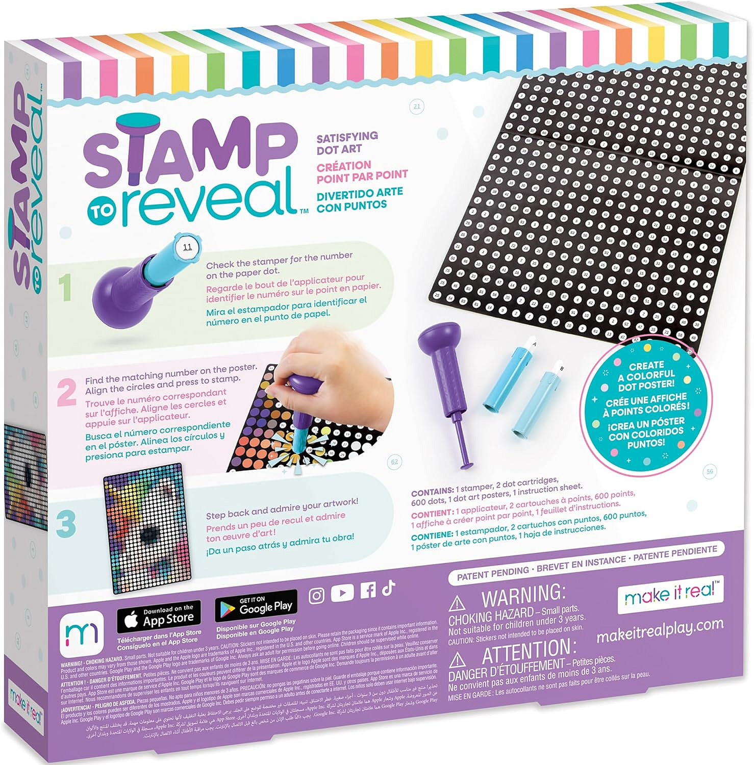 Užijte si uspokojující potěšení z vytváření vlastního tečkovaného plakátu! Podívejte se na razítko na číslo na papírové tečce a na plakátu najděte odpovídající číslo. Zarovnejte kruhy a razítko! Pokračujte v odhalování jednoho barevného tečkového uměleckého plakátu, který můžete zavěsit a užívat si. Každá sada obsahuje vše potřebné k odhalení uměleckého díla se zábavným jednorožcem, včetně razítka, teček a 600 teček. Zažijte větší spokojenost s každým razítkem a po dokončení si užijte hodnotné umělecké dílo. Stamp To Reveal™ Satisfying Dot Art je skvělý dárek pro trendy doplnění, ať už k narozeninám, svátku nebo jen tak. Ideální pro věk 6+. Sbírejte je všechny!