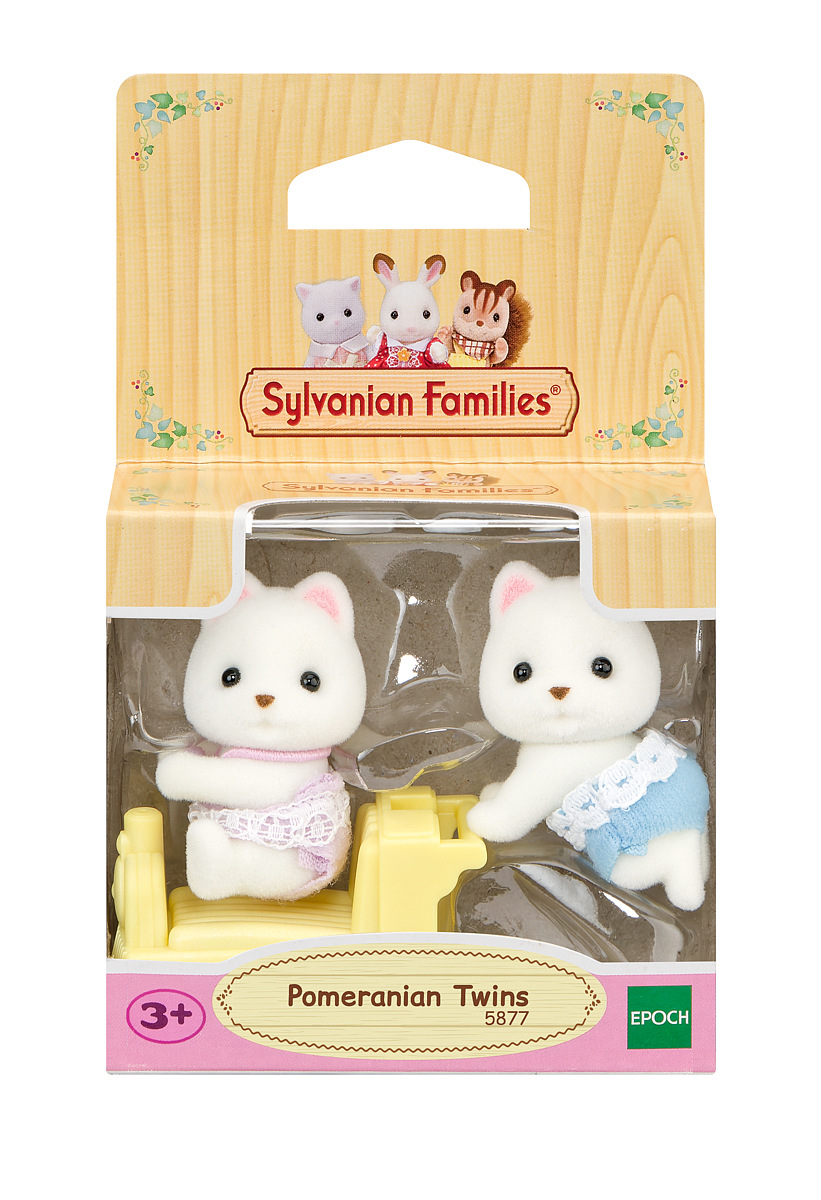 Dvojčata z rodiny pejsků Pomeranian mají charakteristické roztomilé obličeje. Sada obsahuje dvě malé figurky dvojčat pokryté měkkým semišovým kožíškem a také vozítko ve tvaru mašinky. Dvojčata jsou oblečena do zábavných, barevných oblečků s krajkou. Vozítko lze kombinovat s vozítky z jiných sad s dvojčaty. Hračky Sylvanian Families rozvíjejí představivost a podporují děti k hraní rolí. Hraní s figurkami Sylvanian Families rozvíjí kreativitu a učí emoce prostřednictvím vytváření a vyprávění příběhů na základě každodenních zkušeností a pozorování světa. Vyznačují se nejvyšší kvalitou a výjimečným důrazem na detaily. Figurky Sylvanian Families mají pohyblivou hlavu. Oblečení je vyrobeno tak, aby se dalo opakovaně svlékat a oblékat. Baleno v krabičce. Rozměry balení: 7 x 7,5 x 3,5 cm. Věk: 3+