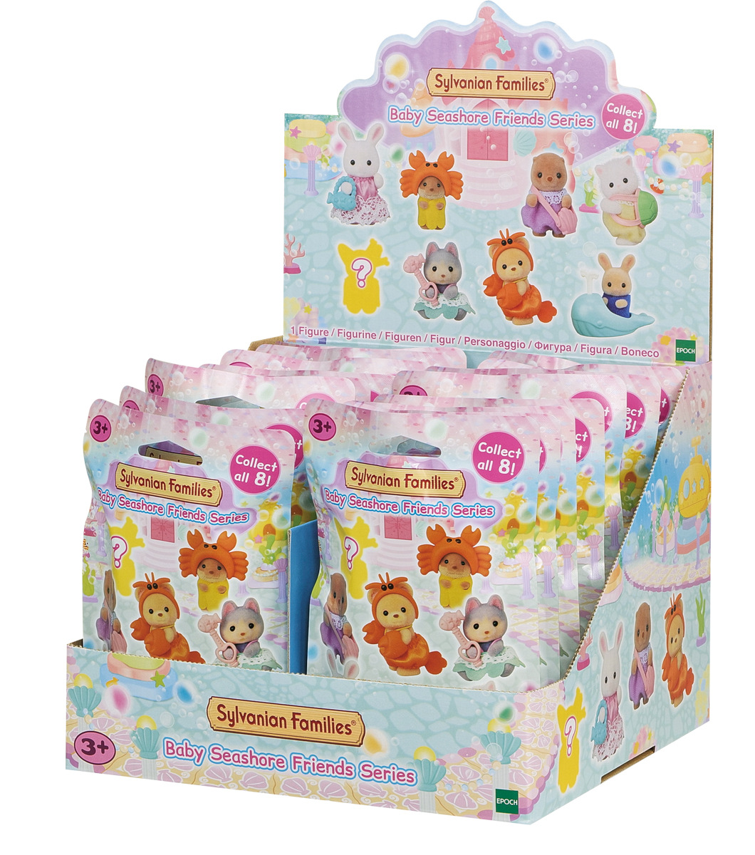 Roztomilá batolata Sylvanian Families se vydávají hledat poklad ukrytý v paláci malých mořských víl. Sada obsahuje 8 různých figurek mláďat spolu s doplňky k sbírání nebo hraní. Figurky a doplňky ze sady lze kombinovat s dalšími sadami, domečky a příslušenstvím Sylvanian Families. Figurky mají pohyblivé hlavičky, ručičky a nožičky. Nasbírejte všech 8 figurek a představte si úžasné příběhy na téma moře a mořských aktivit. Kolekce obsahuje tyto figurky: Baby perská kočka a její želví krunýř, Baby křeček a jeho taška ve tvaru mušle, Baby vydra a jeho klobouk ve tvaru kraba, Baby sněžný králík a jeho taška ve tvaru modré ryby, Baby mléčný králík a jeho velryba, Baby medvěd a jeho kostým kraba, Baby husky a jeho růžové žezlo s rybou a Baby tajná figurka – překvapení. Každý sáček obsahuje jednu figurku. Assort je náhodný mix modelů. Výběr nelze ovlivnit. Baleno v sáčku. Rozměry sáčku: 15,5 x 10,2 x 2,3 cm. Věk: 3+