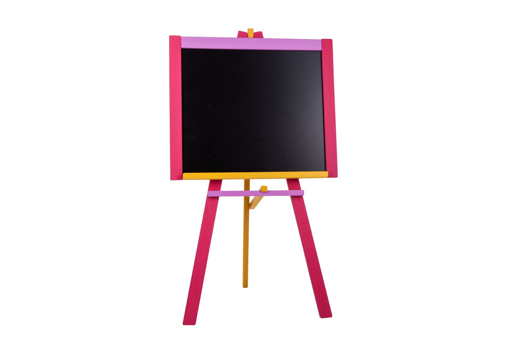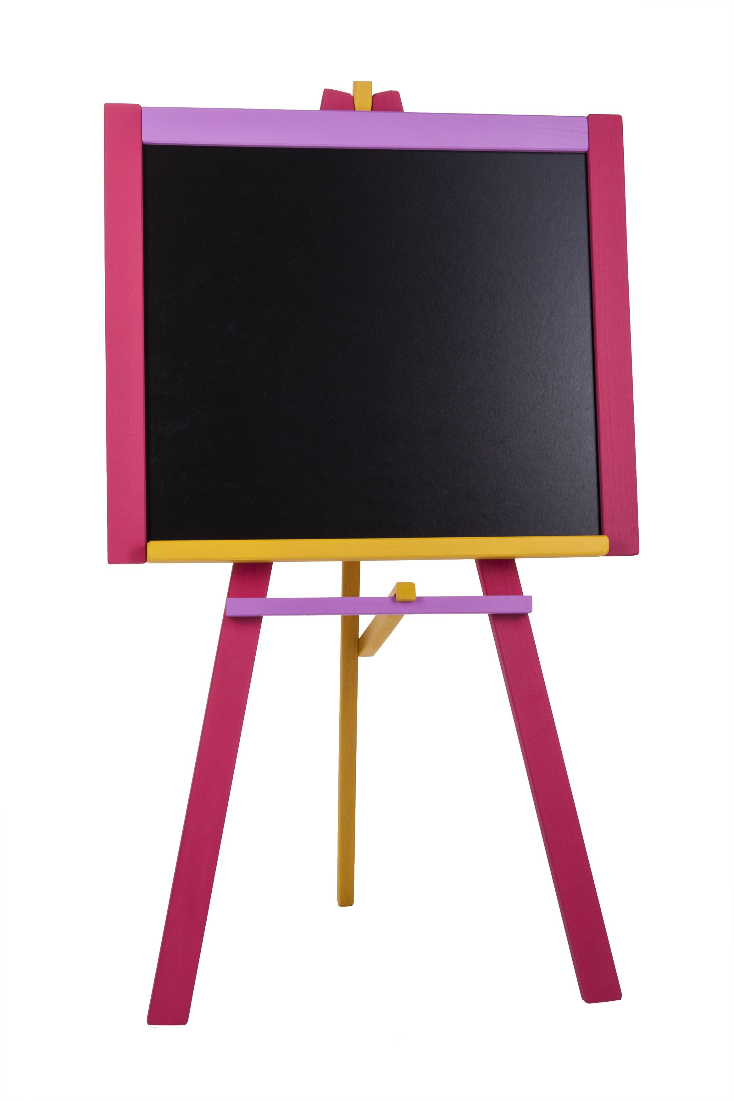 Oboustranná tabule s nastavitelnou výškou. Z jedné strany je zelená plocha pro psaní křídami, z druhé bílá magnetická plocha pro psaní fixou. Nad tabulí je do konstrukce zabudovaná tyčka pro upevnění role papíru, který lze odvíjet a malovat na ploše, kterou poskytují desky tabulí. Obsahuje magnetická písmena, bílé křídy, fix, houbičku a kelímky na vodu a barvy. Obsahuje: 31 dílků. Rozměr: 59 x 57 x výška 111-129 cm. Spodní hrana kreslící plochy: 60-77cm. Rozměr balení: 56,5 x 9 x 71,5 cm. Věk: 3+