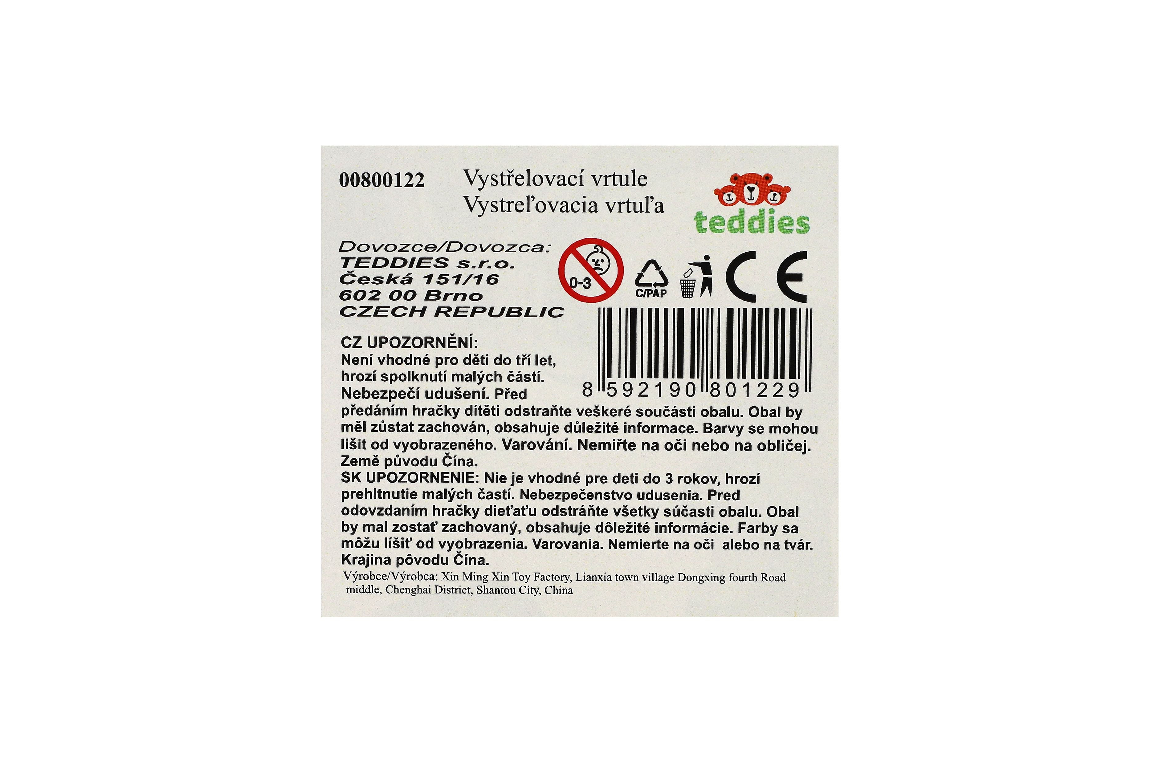 Užijte si spoustu zábavy s tímto vystřelovacím diskem. Vystřelte vrtulku do vzduchu a sledujte, jak vysoko vyletí. Disk může vyletět velmi vysoko. Součástí balení je také startér. Rozměry balení 22 x 26 x 6 cm. Vhodné pro děti od 3 let.