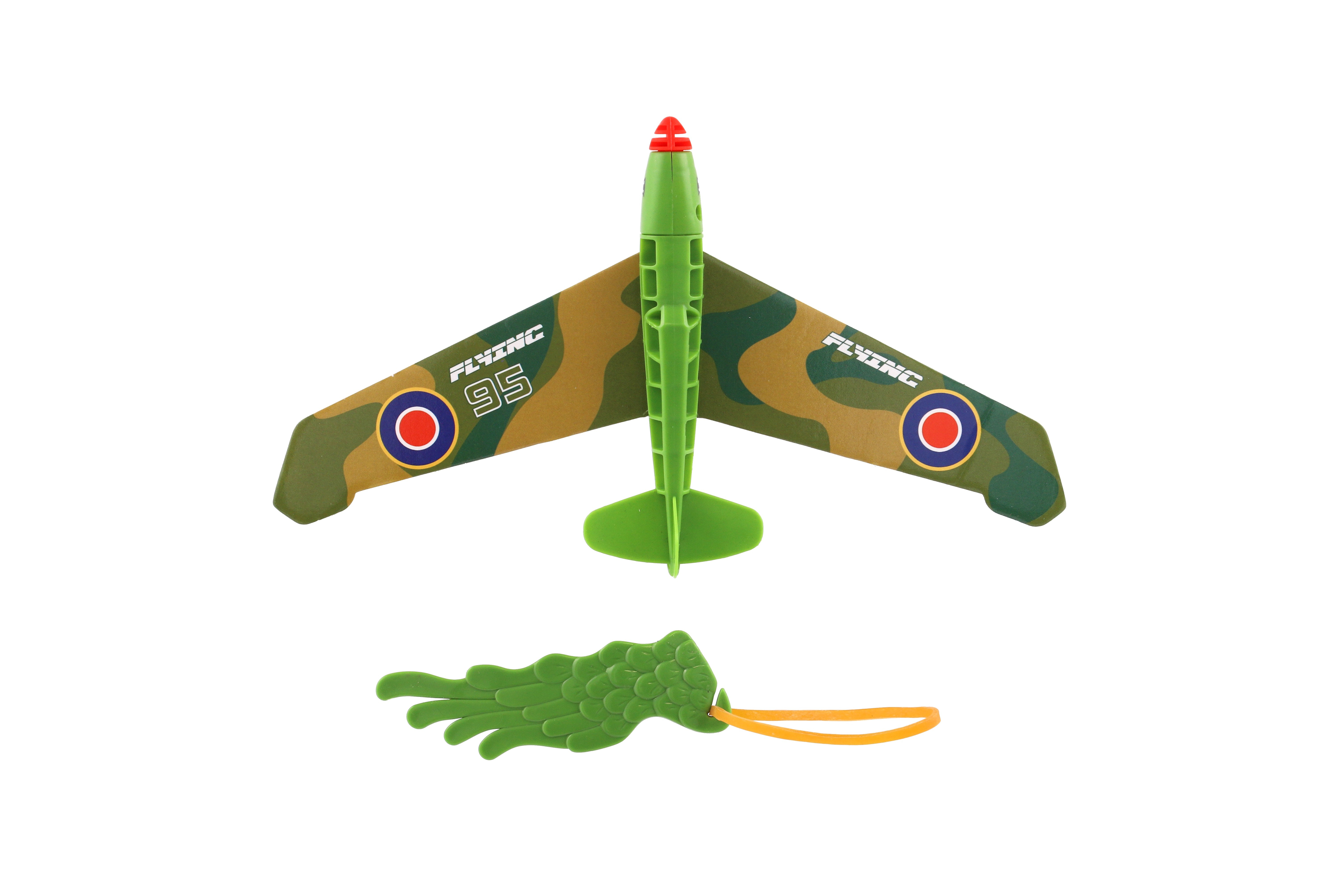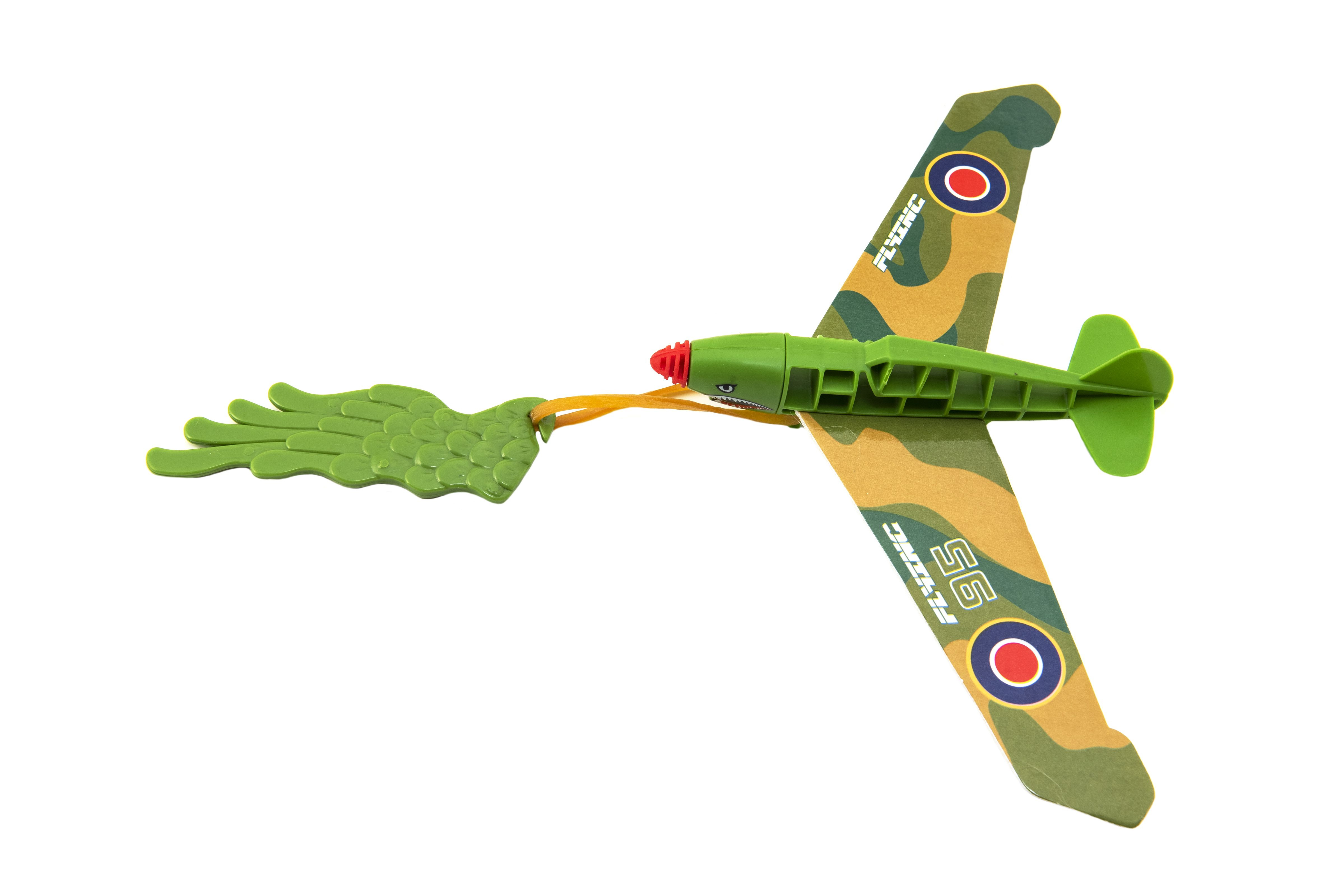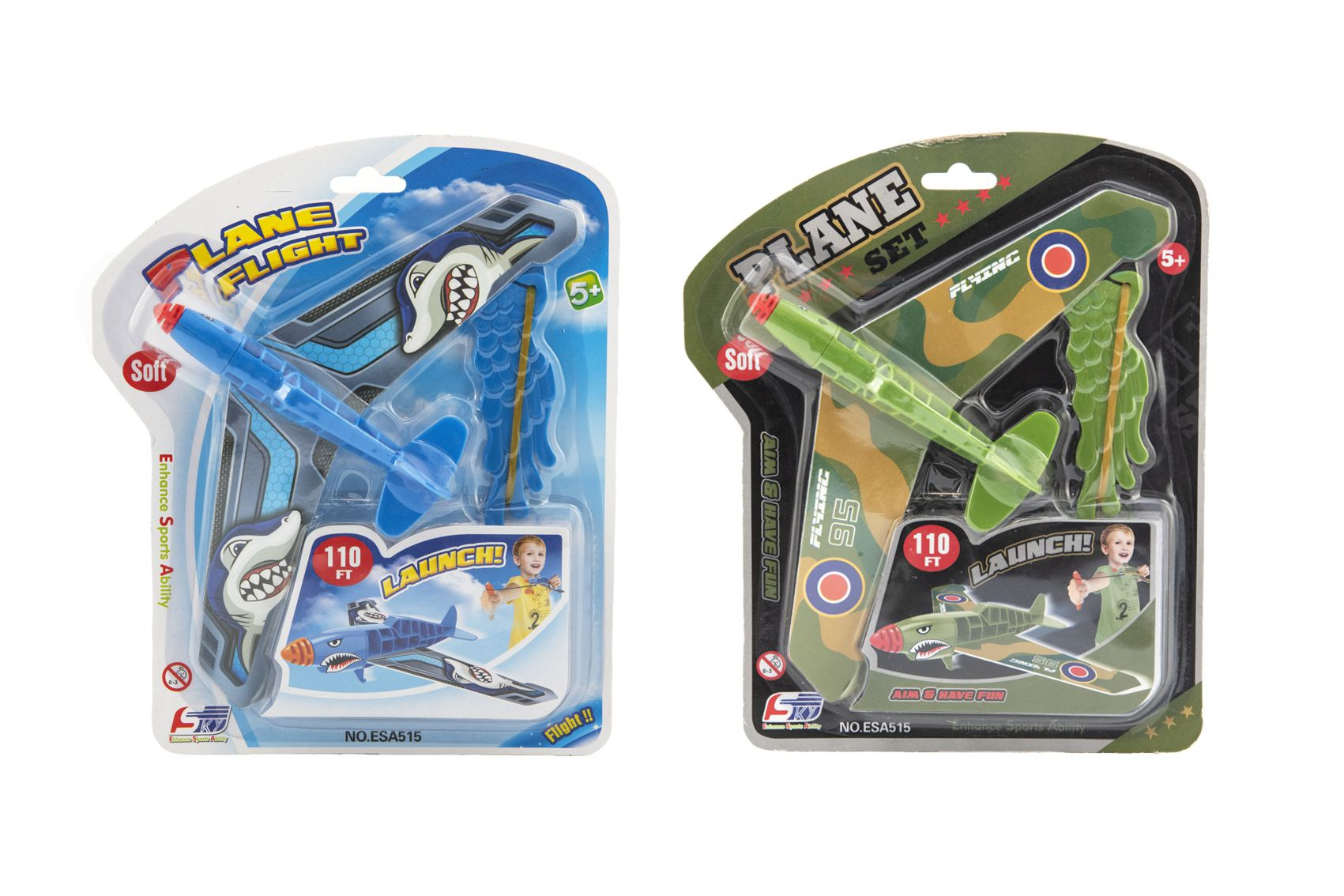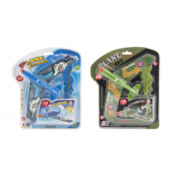 Teddies Abschussflugzeug aus Kunststoff 25x14cm 2 Farben auf Karte 21x25x4cm