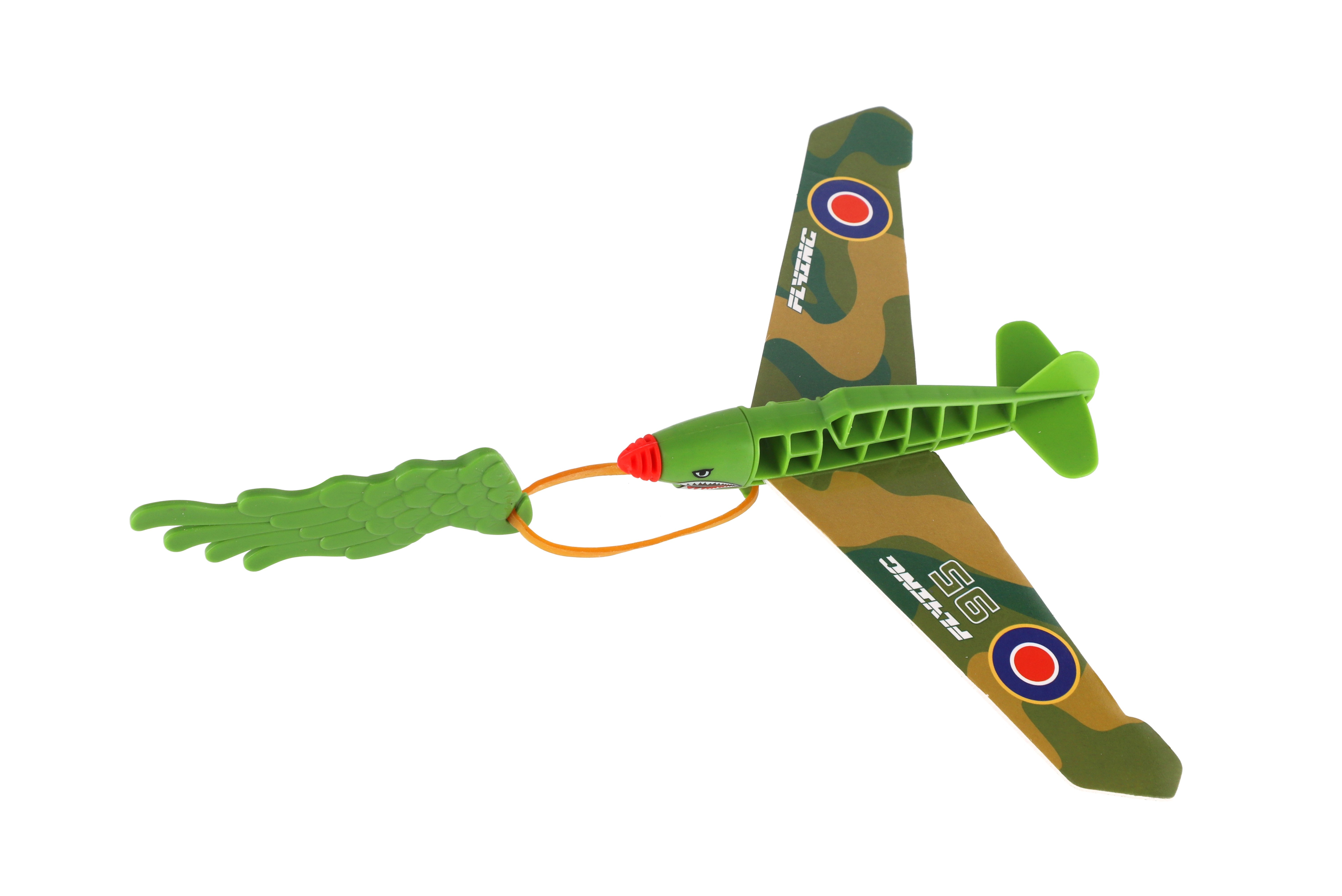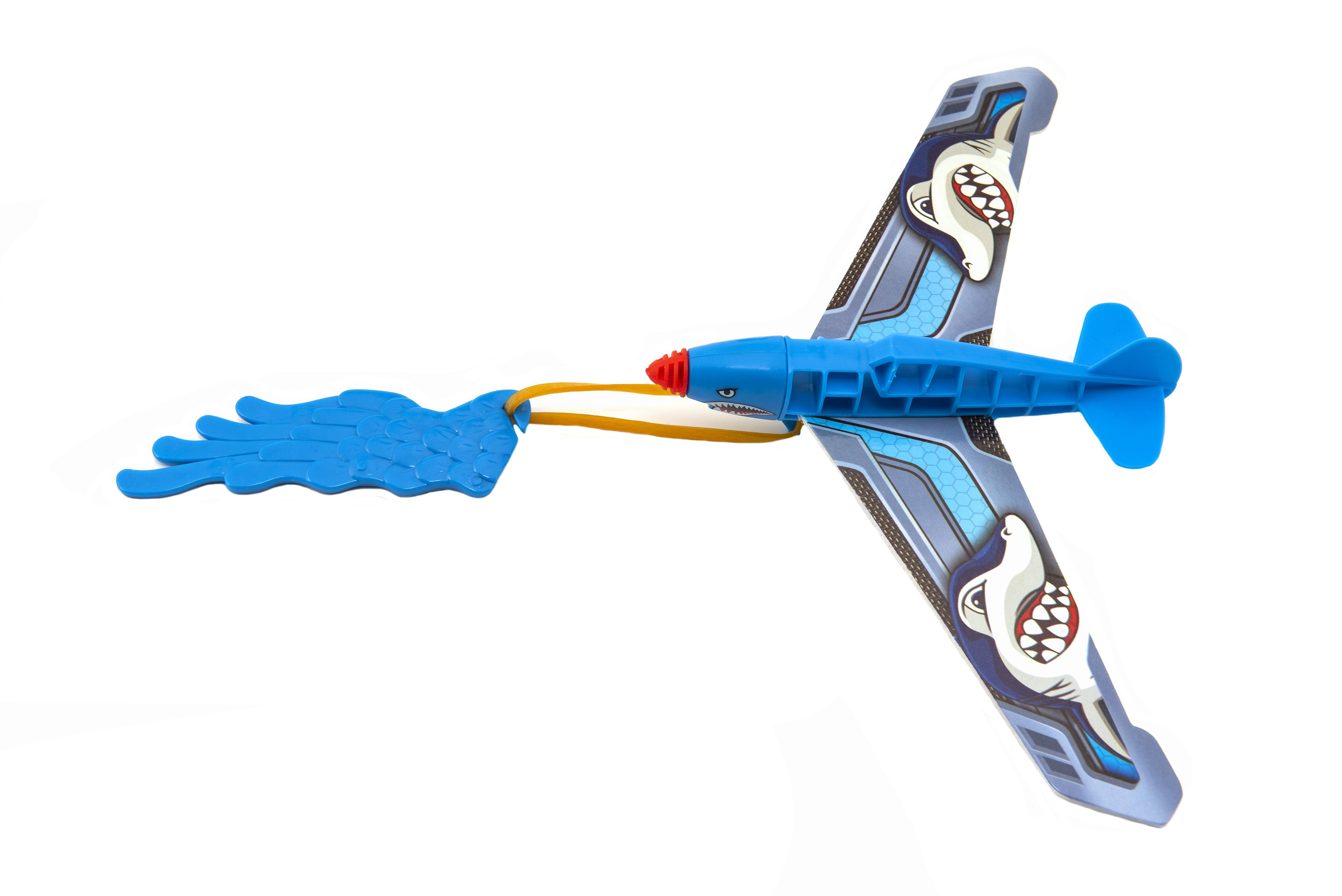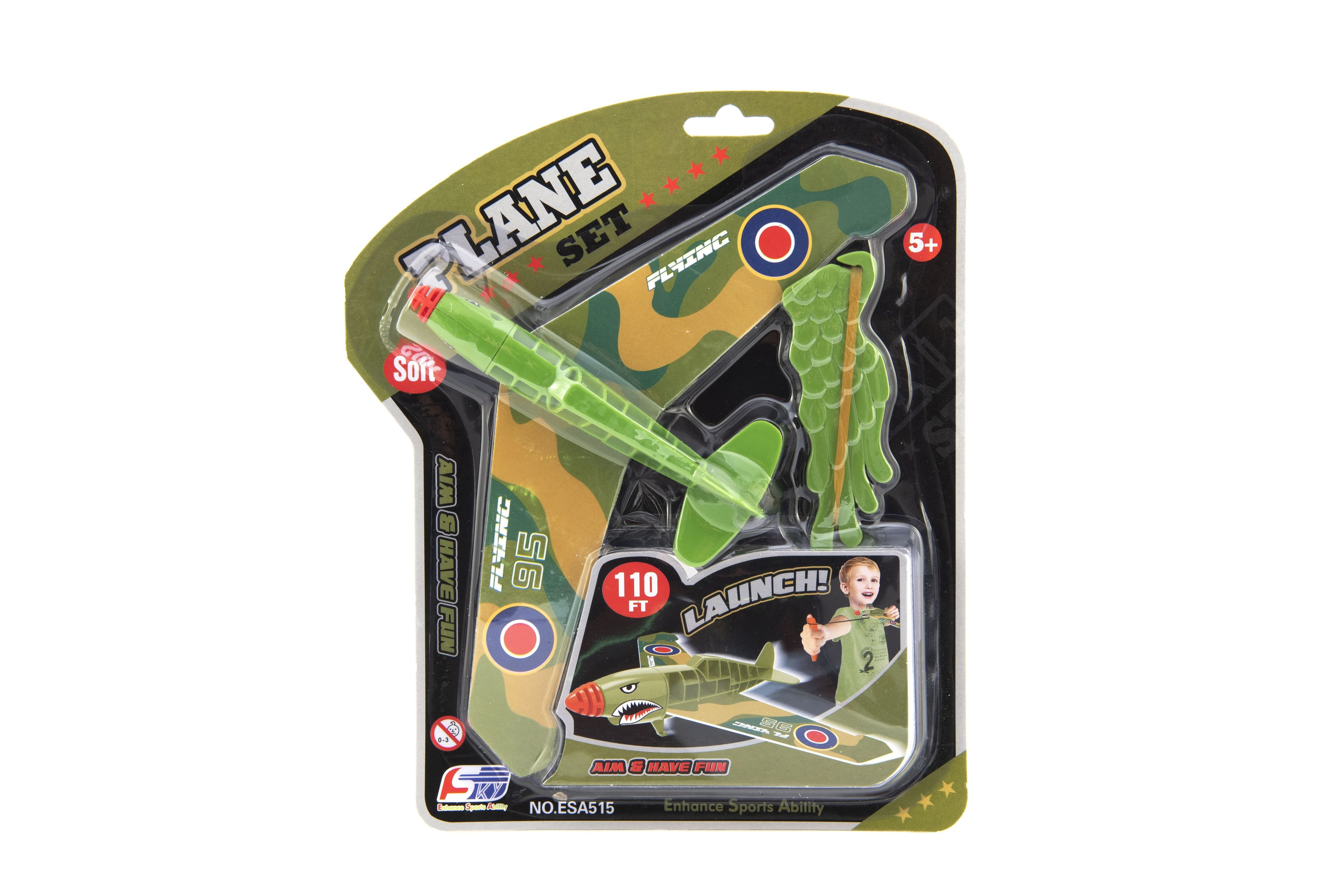 Teddies Abschussflugzeug aus Kunststoff 25x14cm 2 Farben auf Karte 21x25x4cm