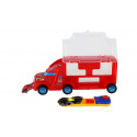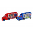 Teddies Auto LKW Transporter + Auto 2 Stück Kunststoff 28cm Freilauf 2 Farben in Schachtel 29x12x8cm