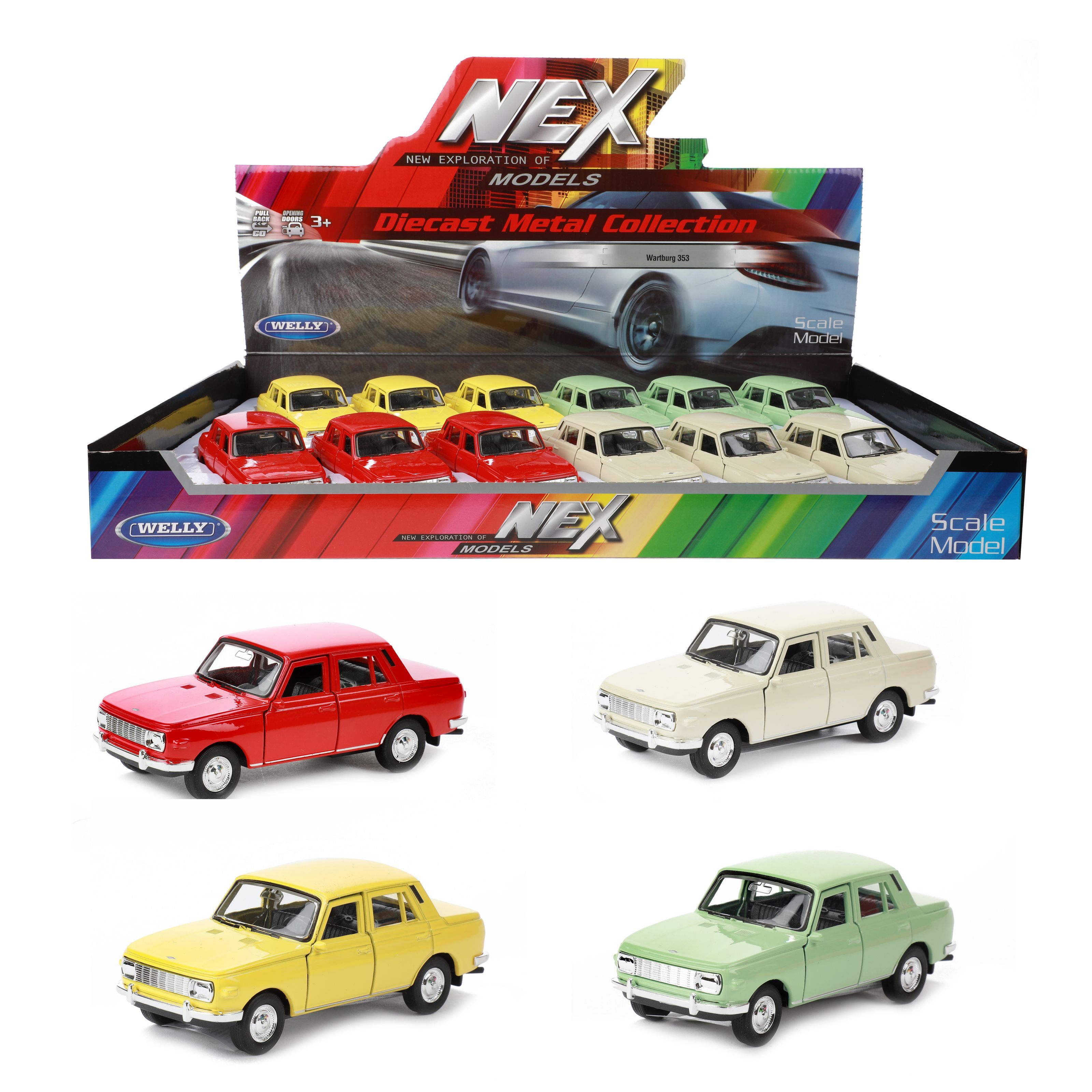 Teddies Auto Welly Wartburg 353 Metall/Kunststoff 12cm, 4 Farben mit Rückziehmotor