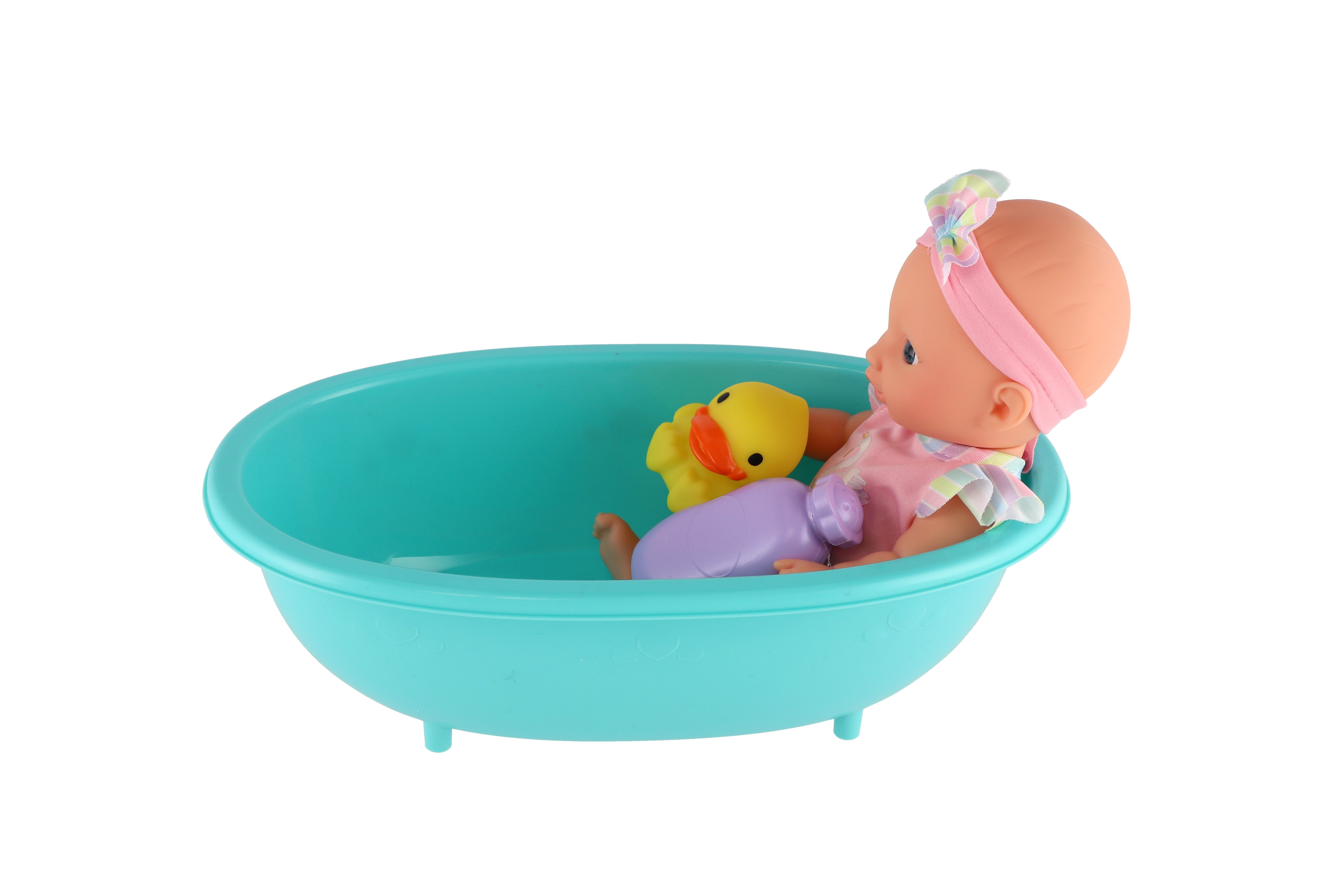 Beschreibung Teddies Babypuppe 26cm fester Körper aus Kunststoff mit Badewanne und Zubehör in Schachtel 20x33x10cm