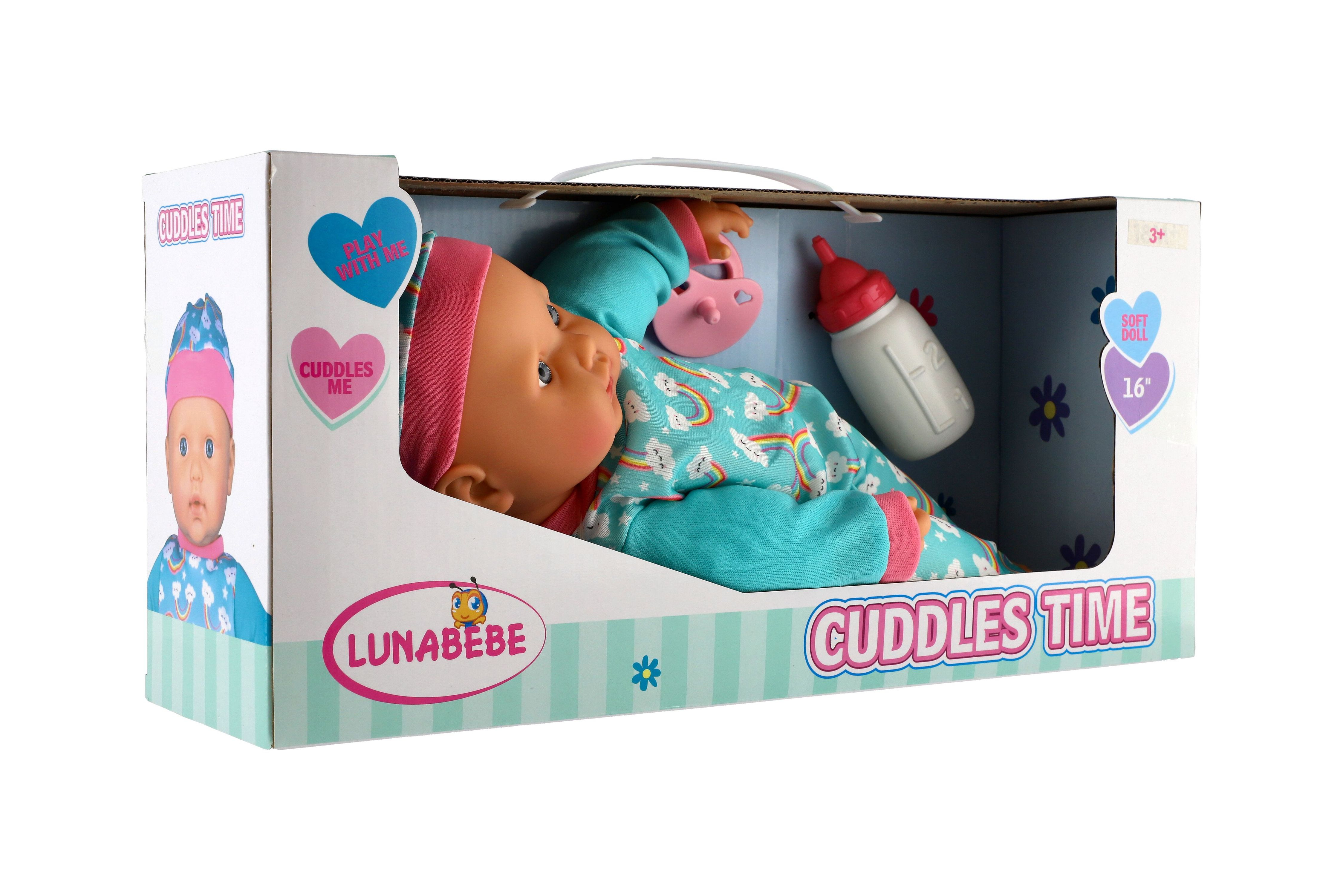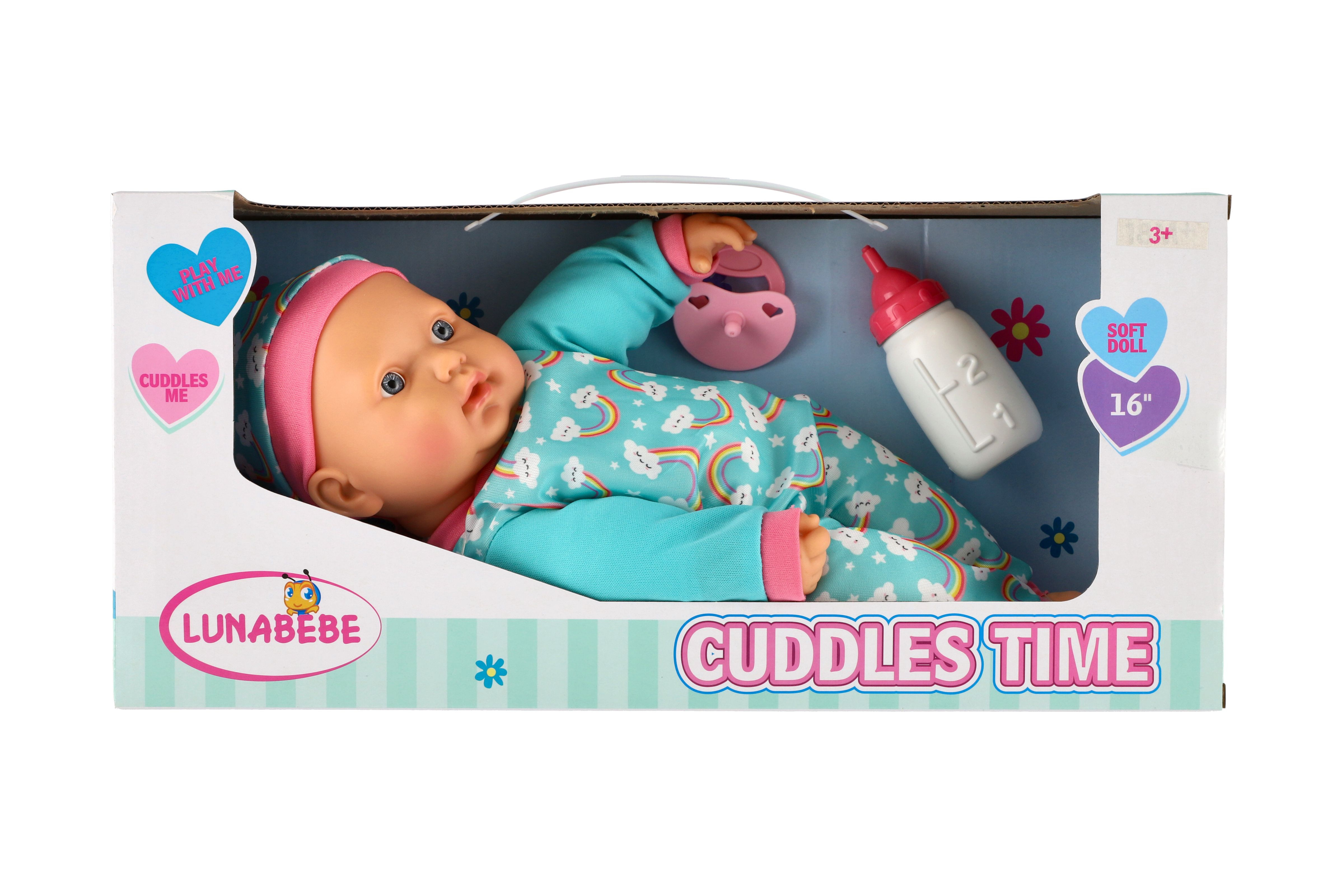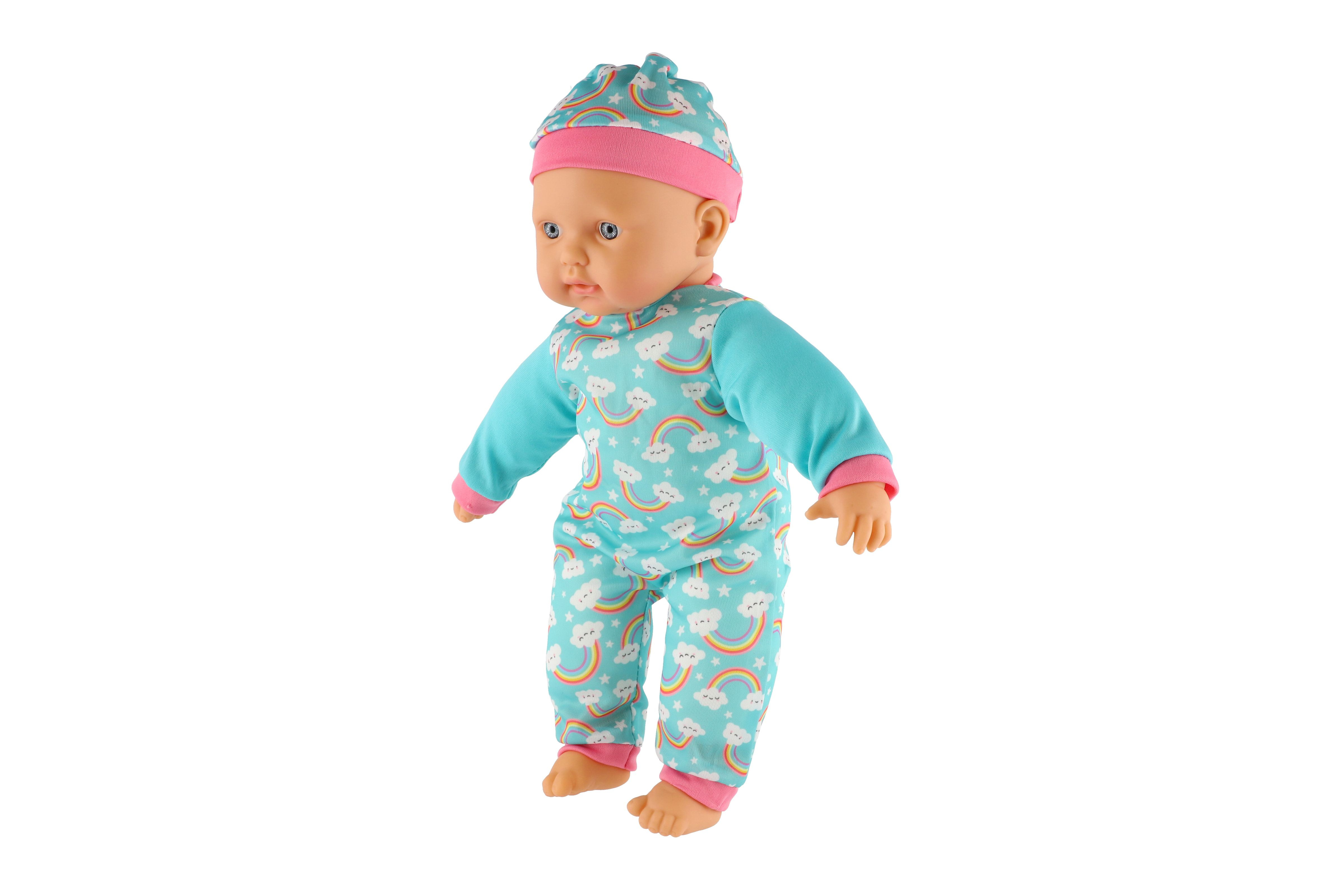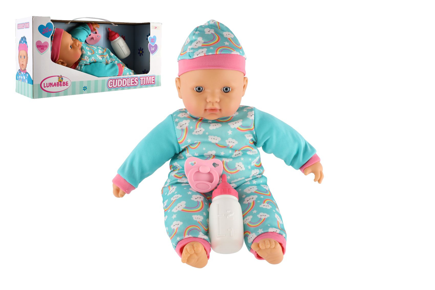 Eine süße Puppe mit weichem Körper in einem wunderschönen Regenbogen-Outfit. Dieses Baby wird sicherlich jedes kleine Mädchen glücklich machen und ein unverzichtbarer Teil ihres Lebens werden. Im Lieferumfang sind außerdem eine Flasche und ein Schnuller enthalten, die jede Mutter unbedingt für ihr Baby braucht. Puppengröße: 40 cm Verpackungsgröße: 41 x 19 x 12,5 cm