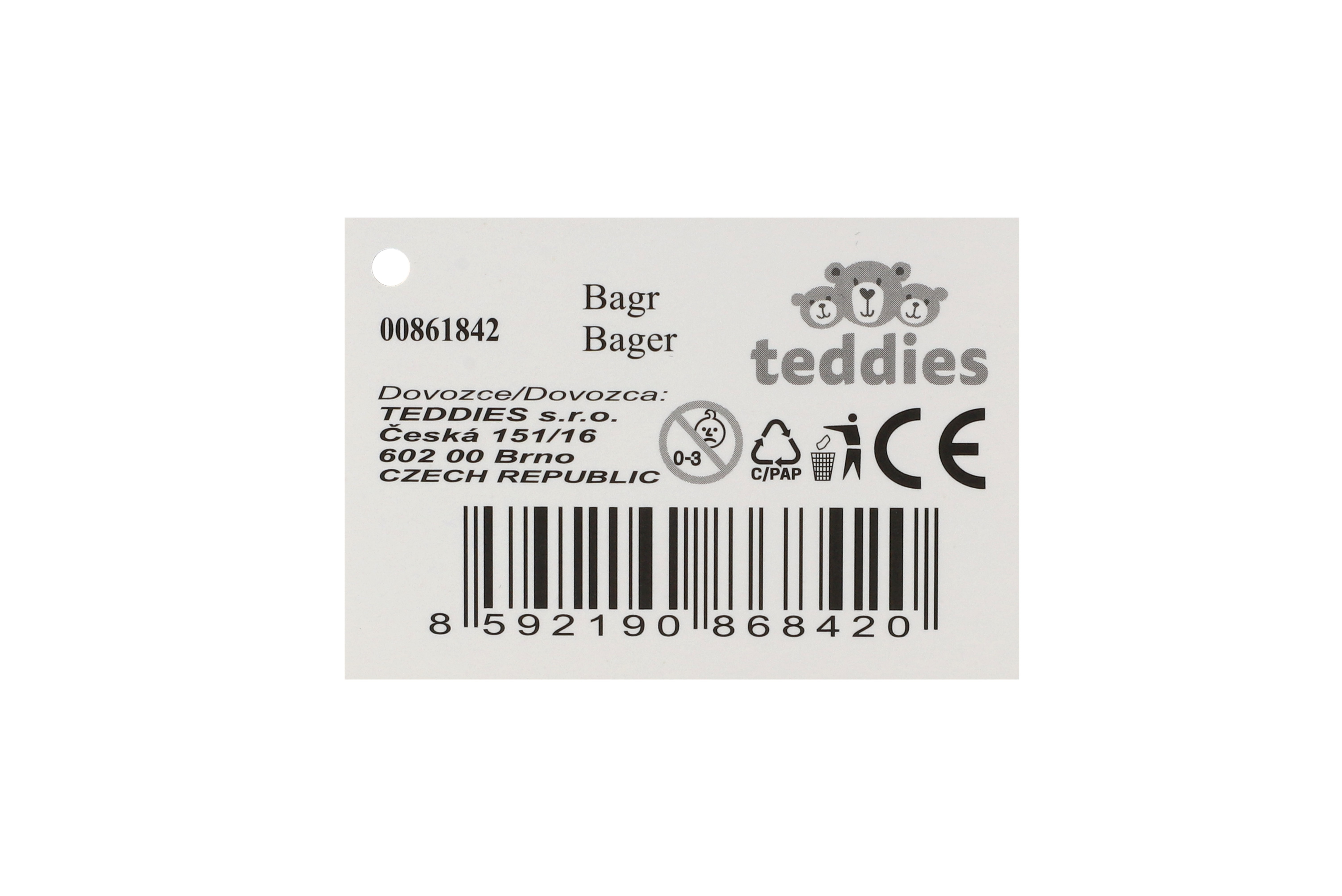 Beschreibung Teddies Bagger/Lader Raupenfahrzeug Plastik/Metall 8x26cm mit Freilauf