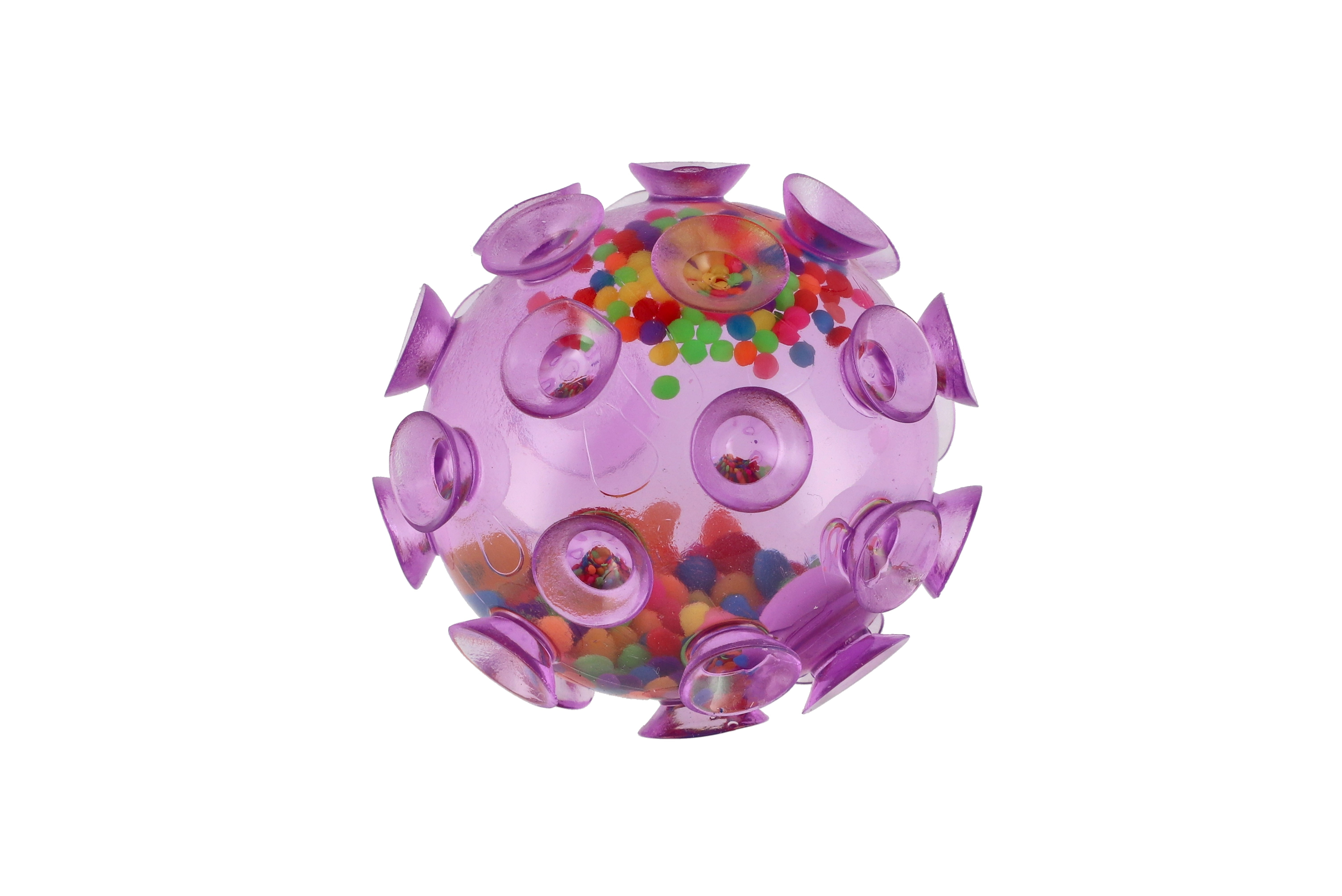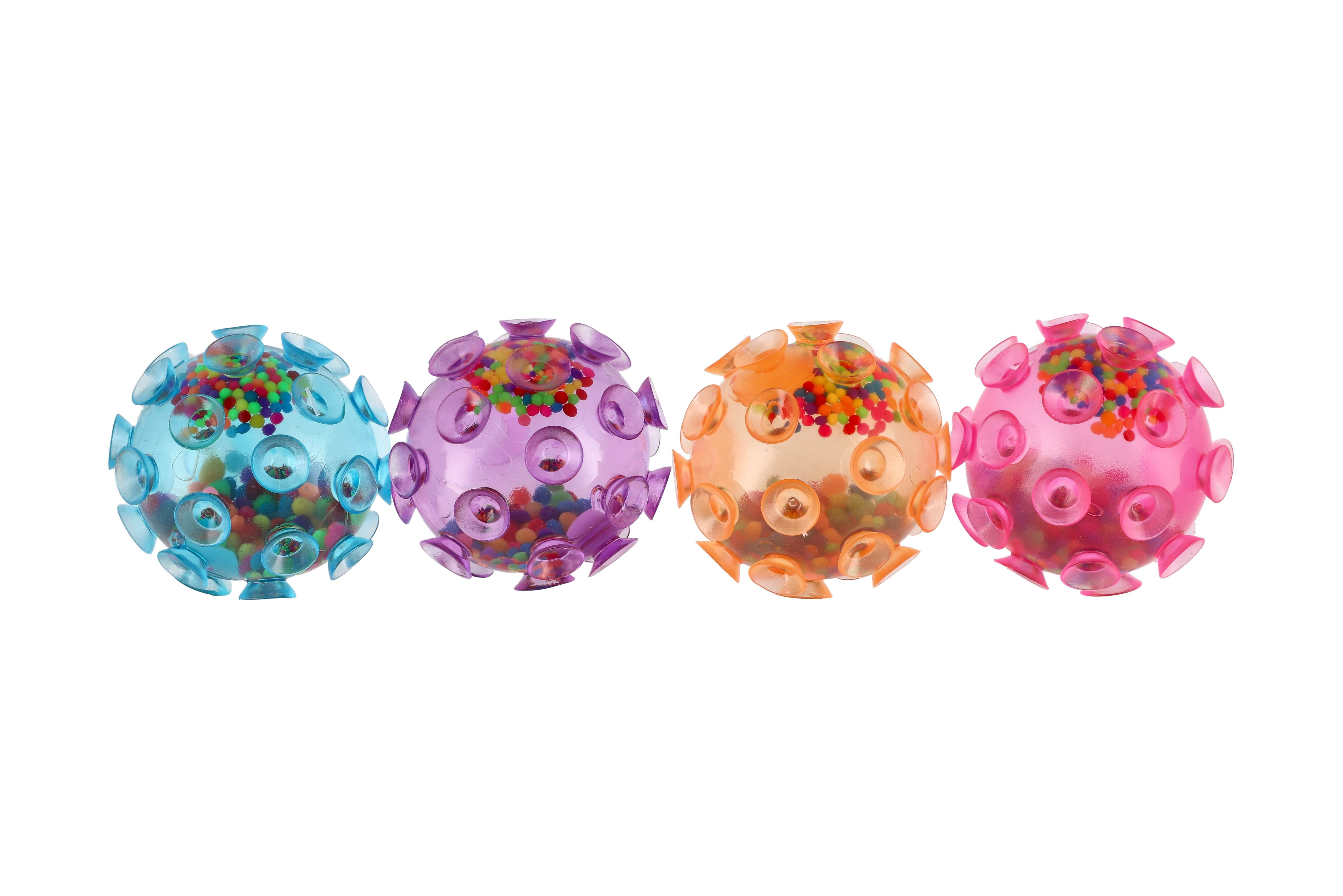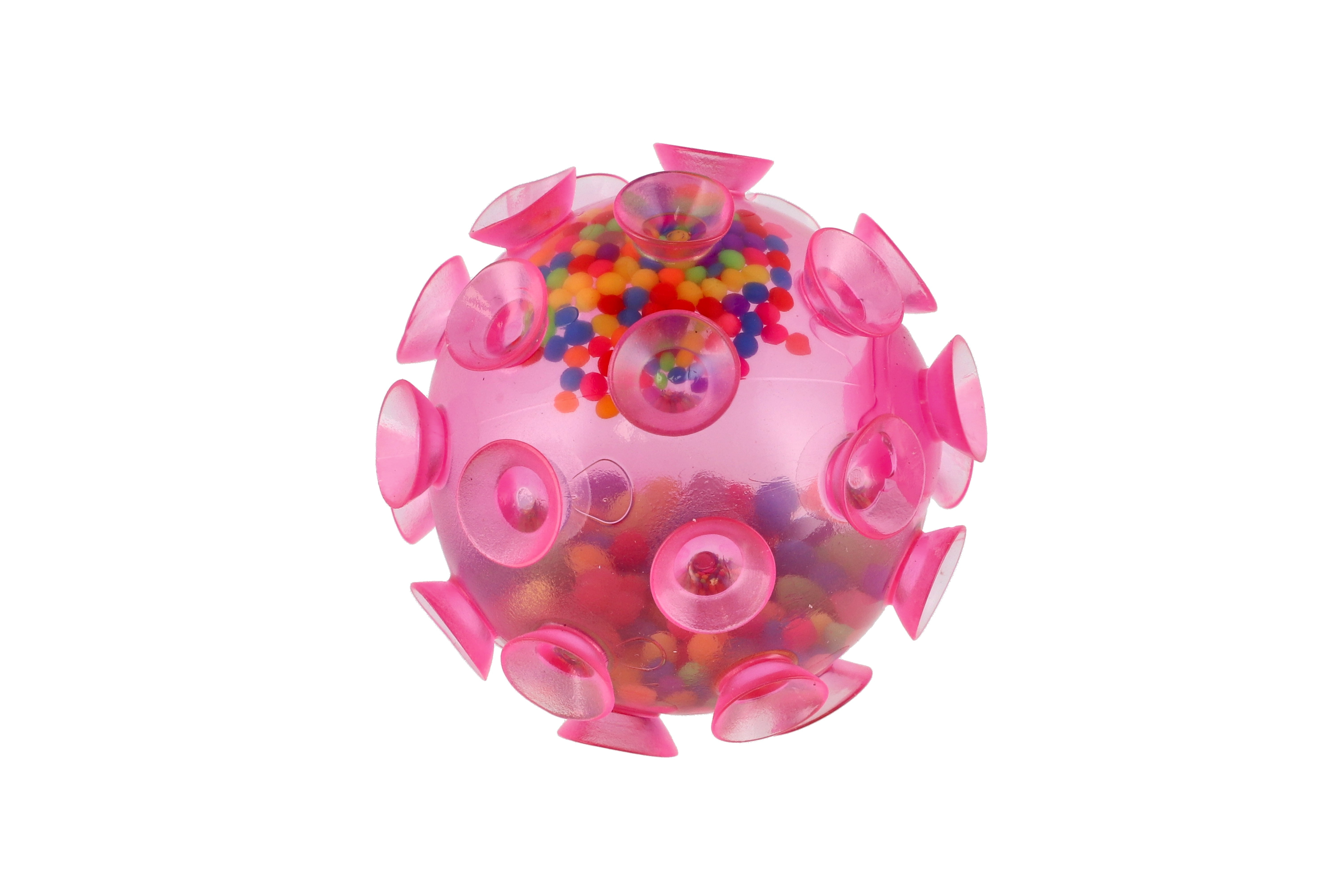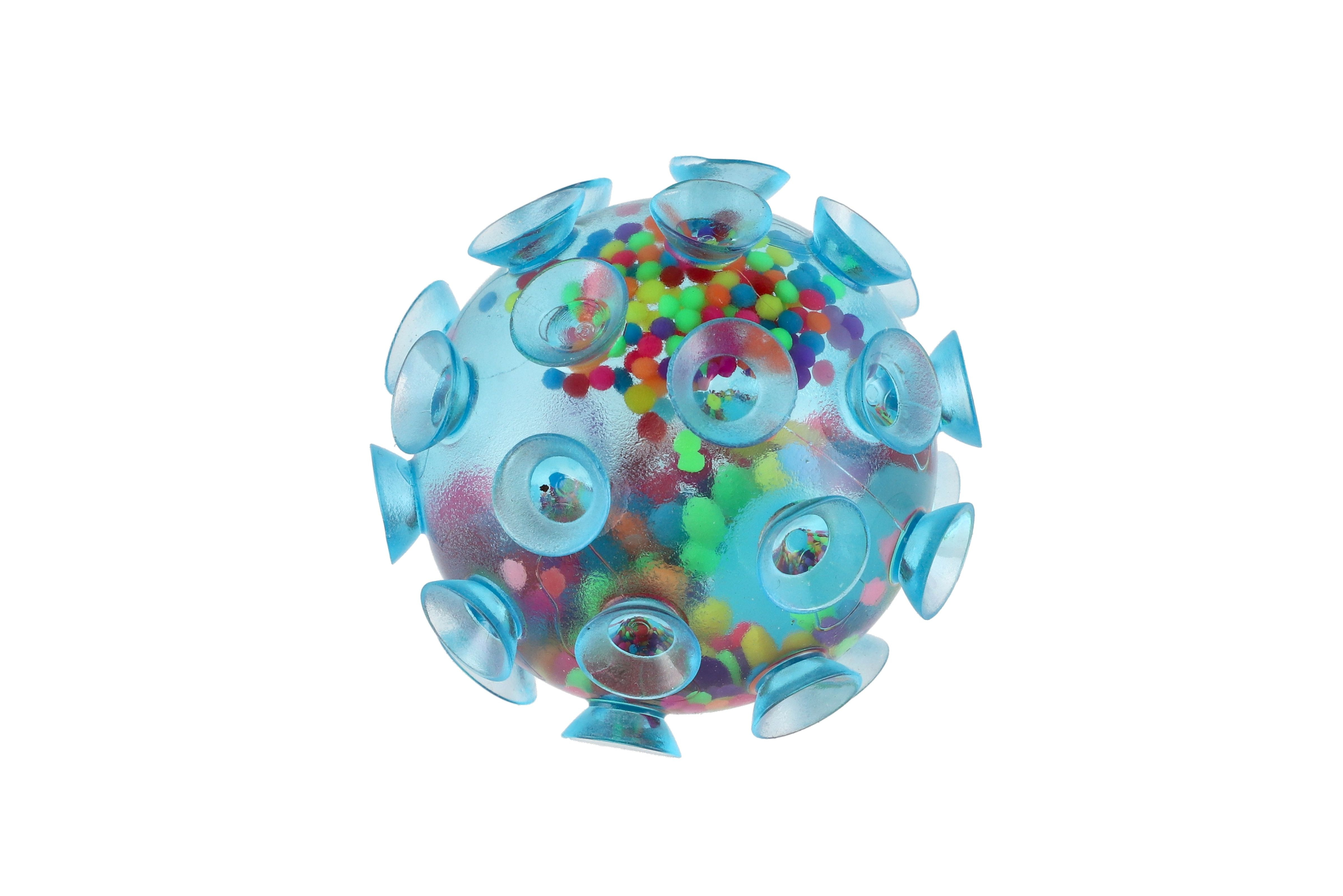 Míček je pokrytý přísavkami. Hoďte míček na hladký povrch a míček se přisaje při nárazu na plochu. Míček můžete mačkat, je naplněný kuličkami. Rozměr míčku: 7 cm Vhodné pro děti od 3 let
