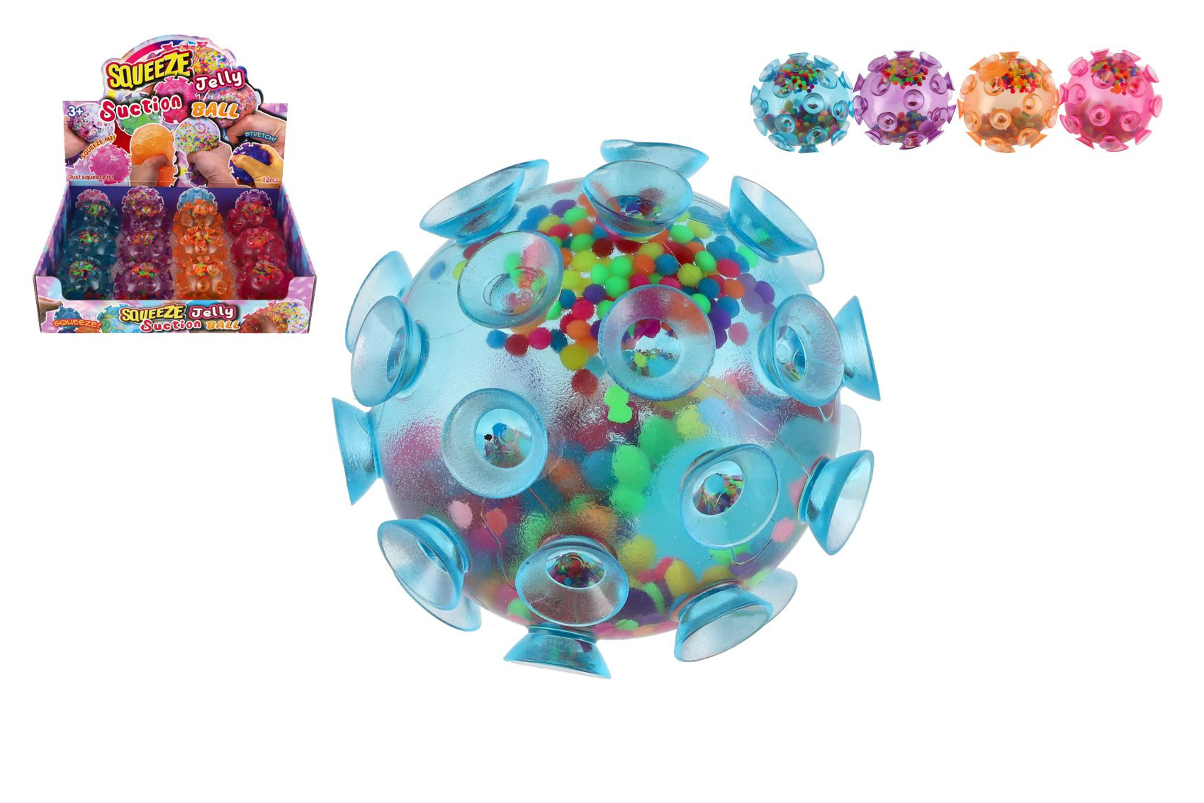 Beschreibung Teddies Ball mit Saugnäpfen antistress Quetsch-Silikon 7cm 4 Farben