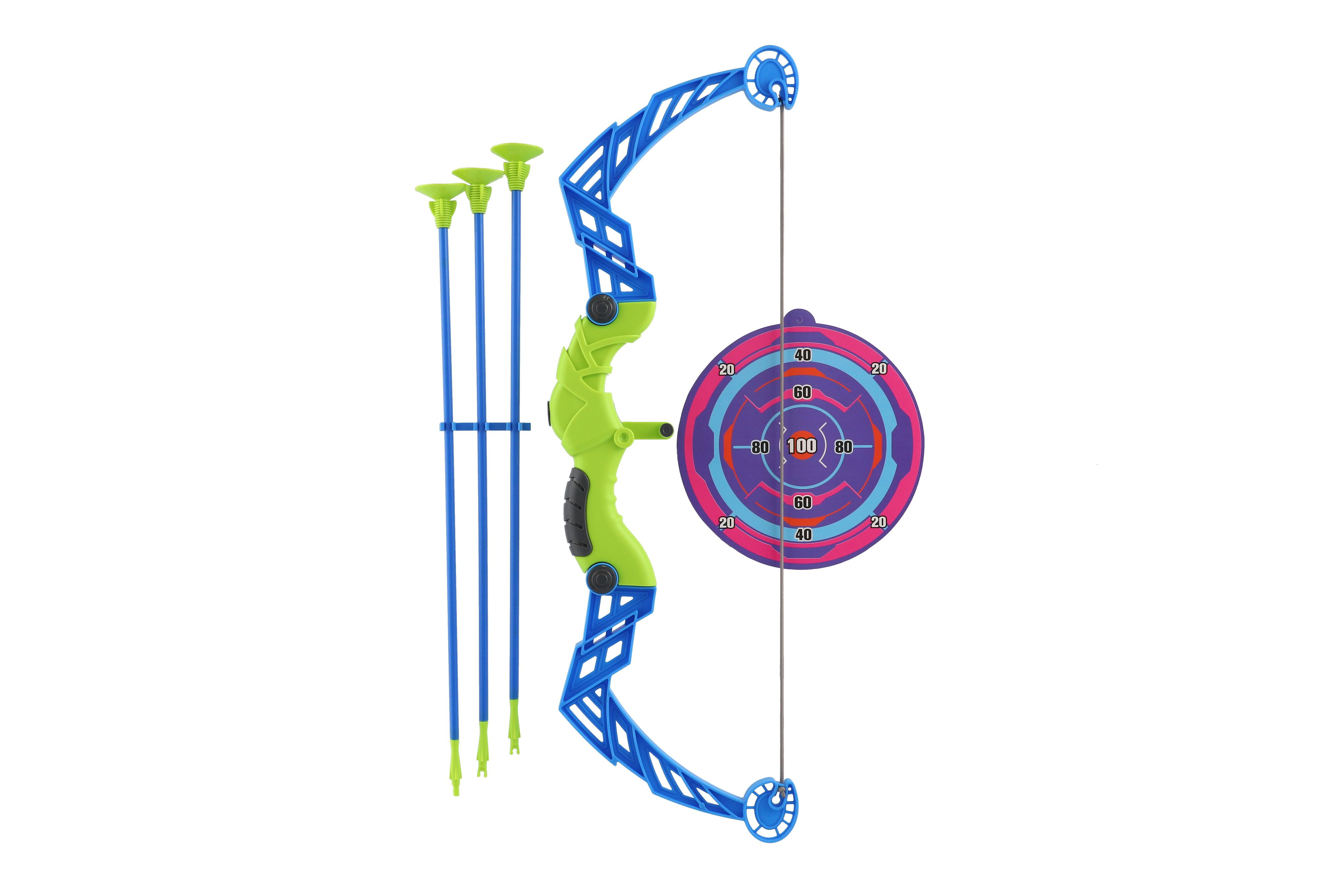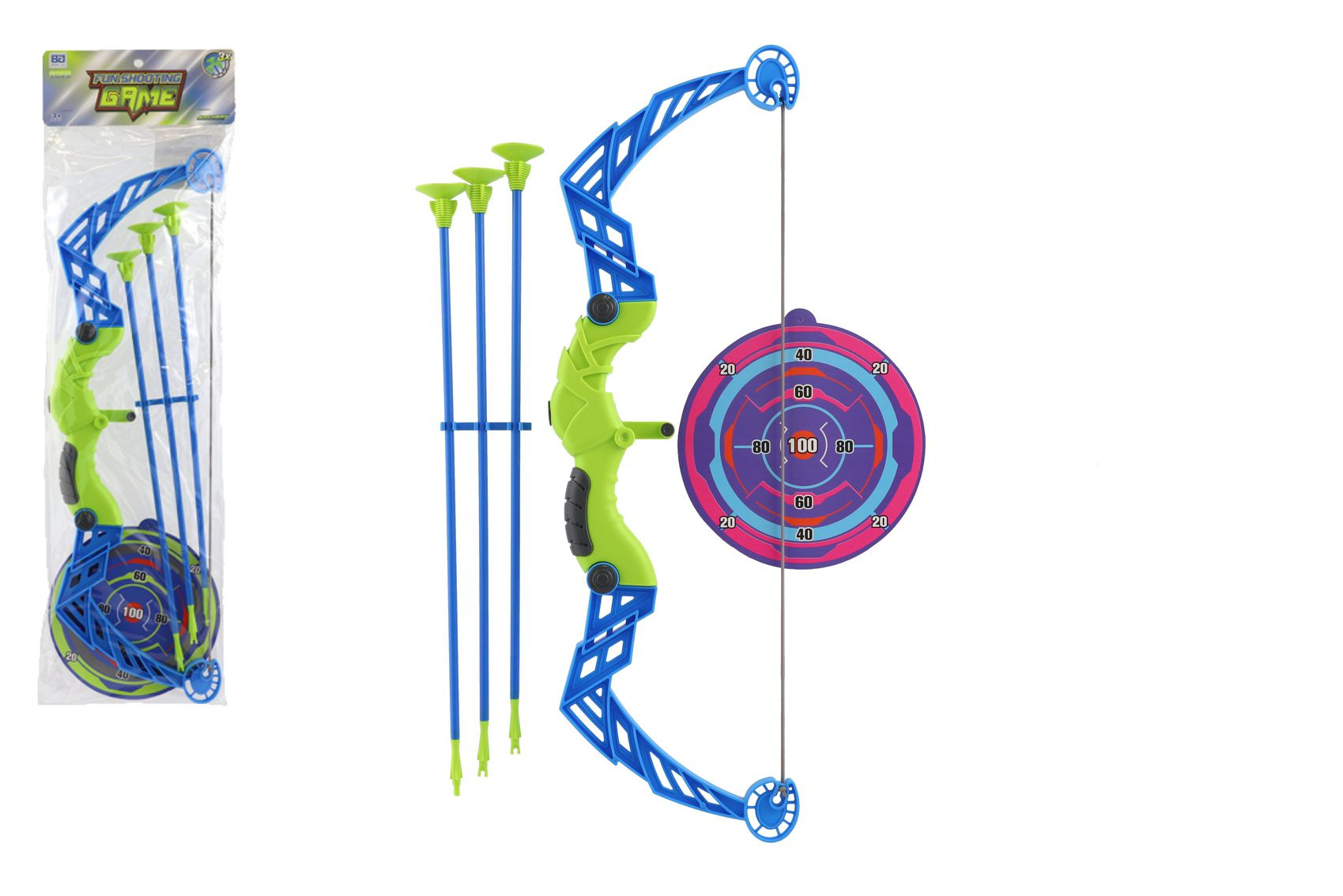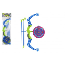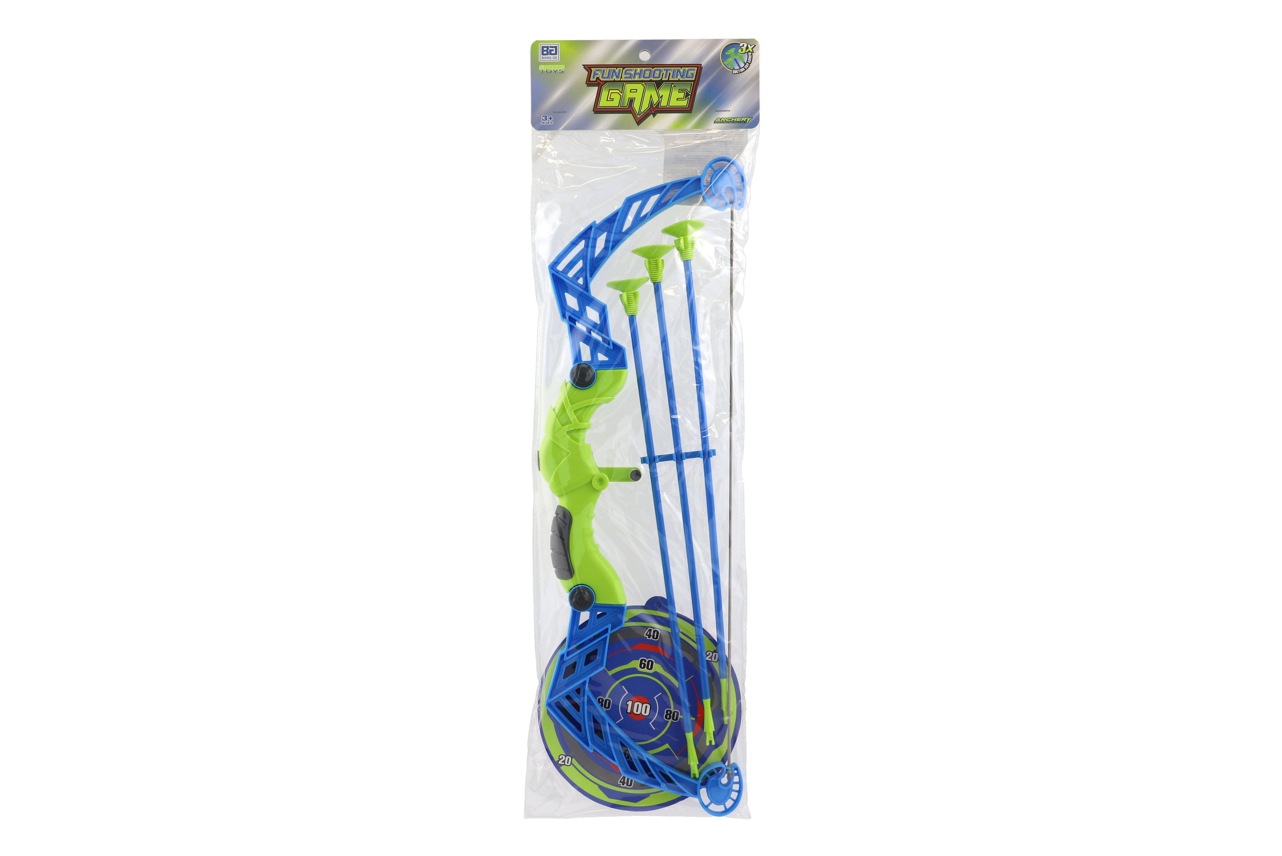 Teddies Bogen 57cm + Pfeile mit Saugnäpfen Kunststoff 3 Stück + Zielscheibe im Beutel