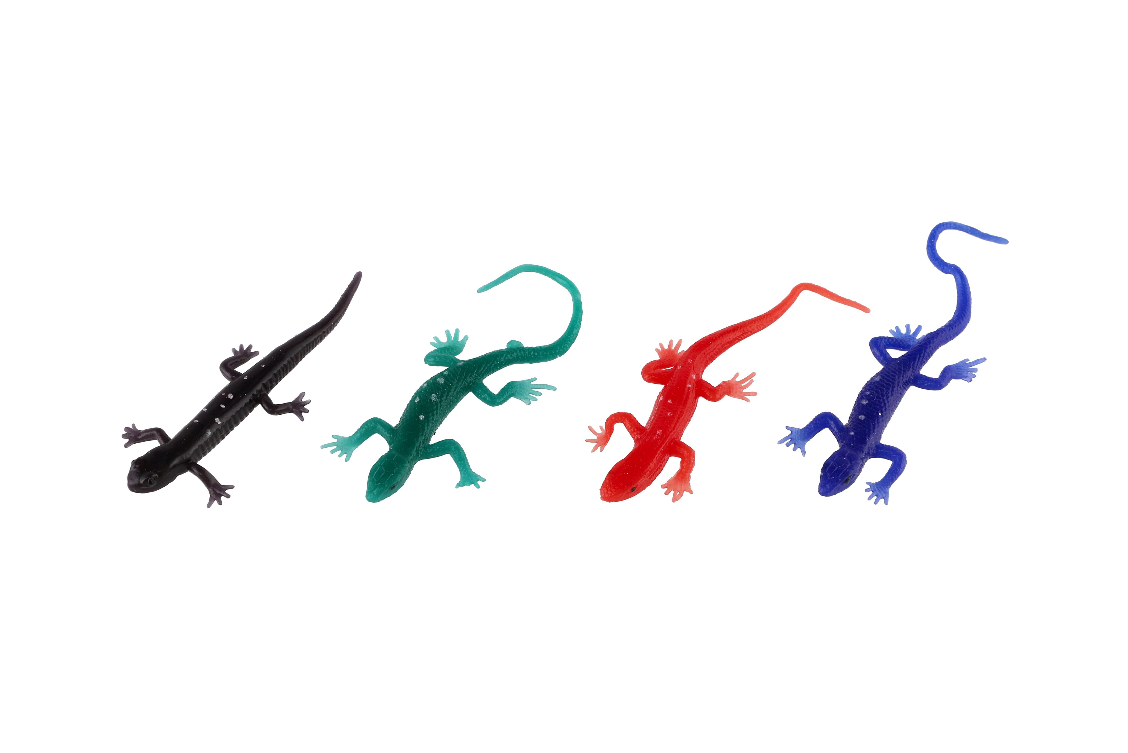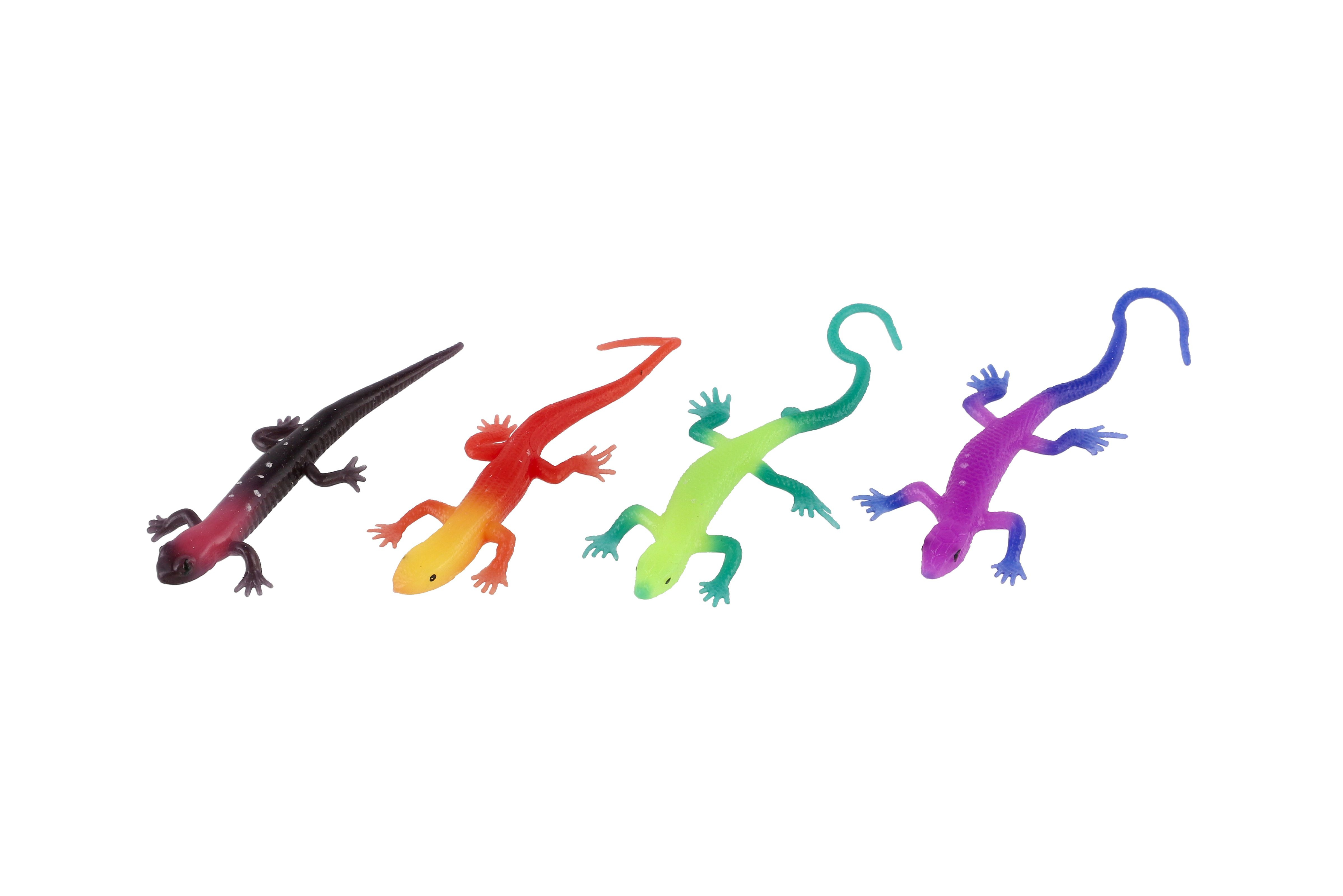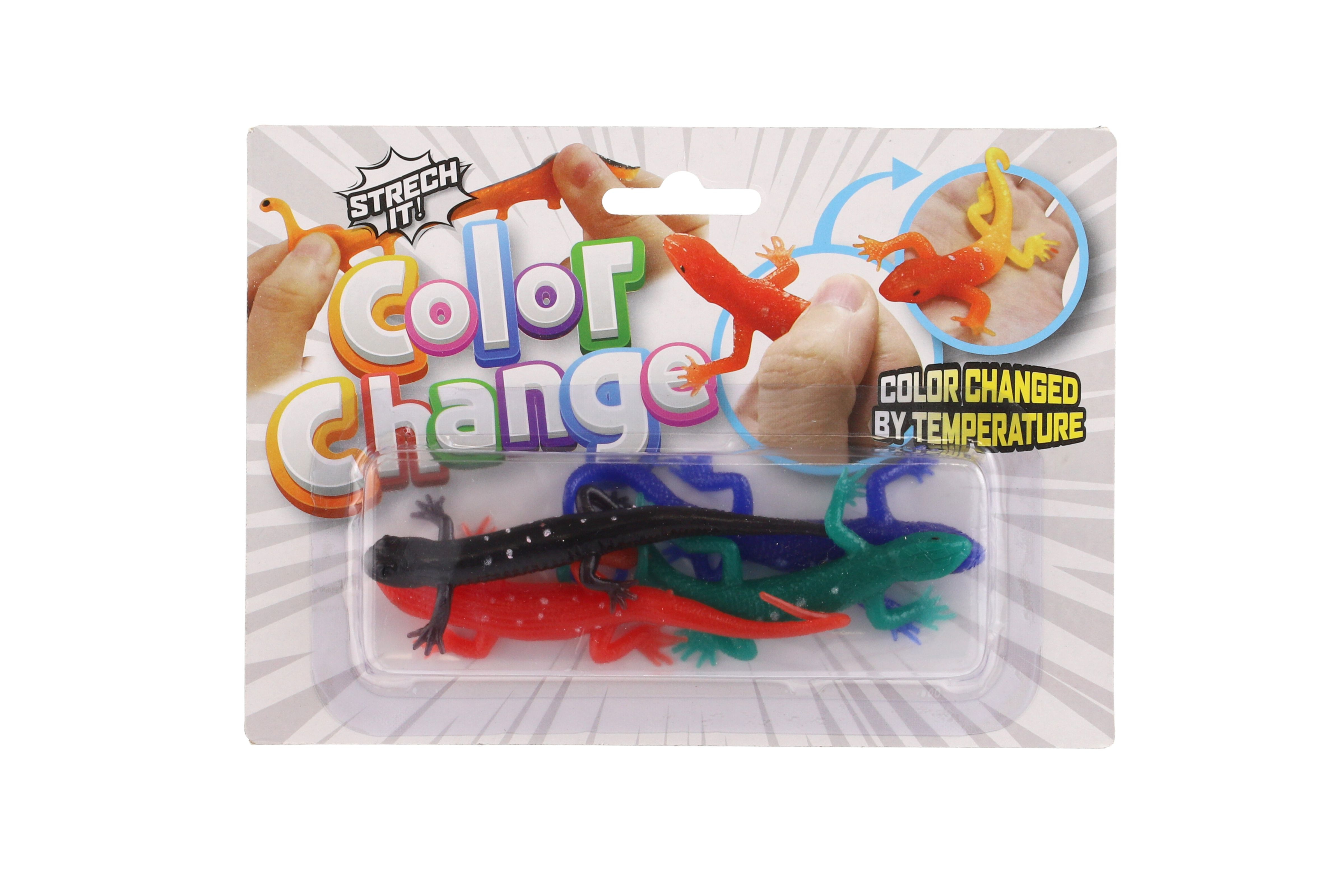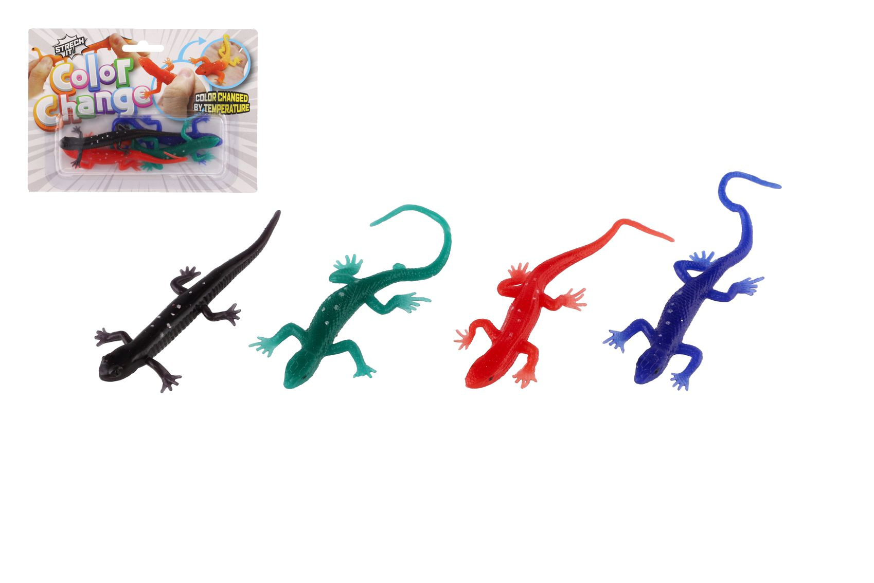 Teddies Dehnbare, farbwechselnde Zieh-Echse 4 Stück auf Karte 18x13x3cm