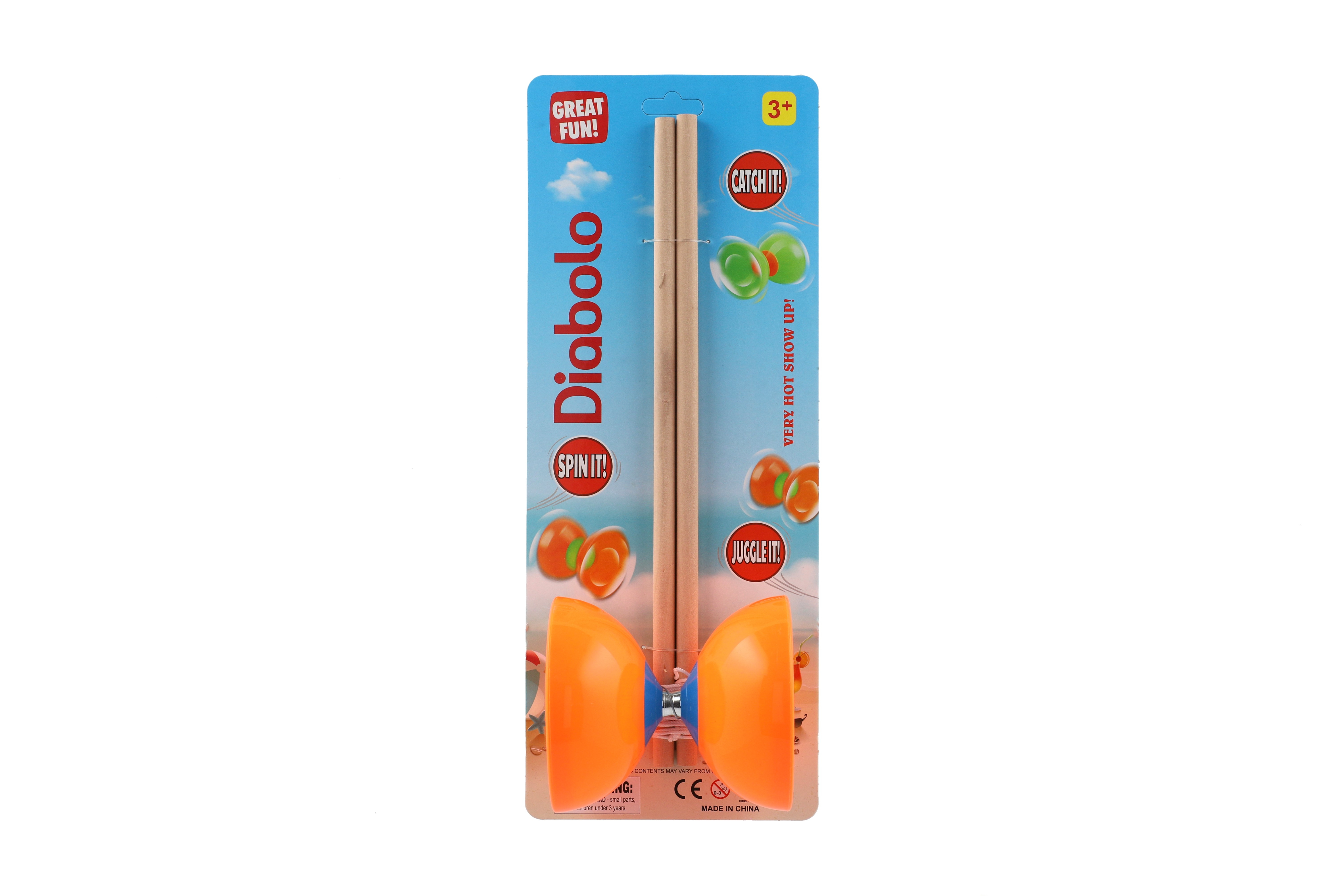 Teddies Diabolo groß Set Kunststoff/Holz 35x12cm 2 Farben auf Karte